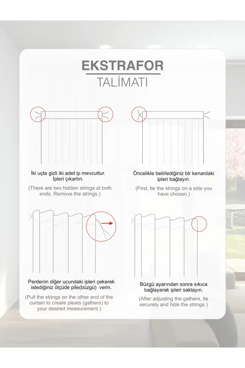 Mahsulotning bej rangi, turli yorug'lik sharoitlarida ozgina ton farqlarini ko'rsatishi mumkin. Karnizga o'rnatish moslamalari mahsulotga kiritilmagan. Perdening o'lchamlarini derazangizga mos ravishda tanlashingiz, eng yaxshi natijaga erishishingizni ta'minlaydi.