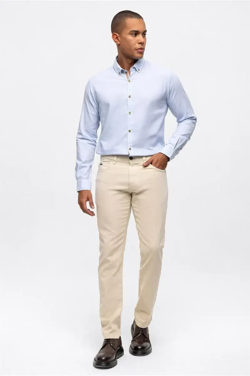 5 choʻntakli dizayni amaliy funksionallikni taqdim etadi, bu sizga kundalik ehtiyojlaringizni qondirishga imkon beradi. Bej rangi har qanday kiyimga mos keladi, bu esa sizga nafis koʻrinish yaratishni osonlashtiradi. Har kuni kiysangiz ham, maxsus kunlarda kiysangiz ham, Bej Slim Fit 5 Choʻntakli Paxta Chino Shimlari sizning har doim zamonaviy koʻrinishingizni taʼminlaydi.