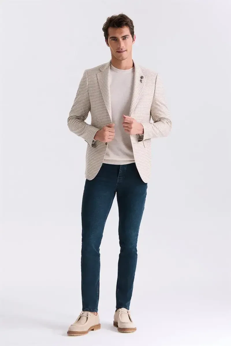slim fit ceket, yazlık spor ceket, bej ceket, desenli ceket
