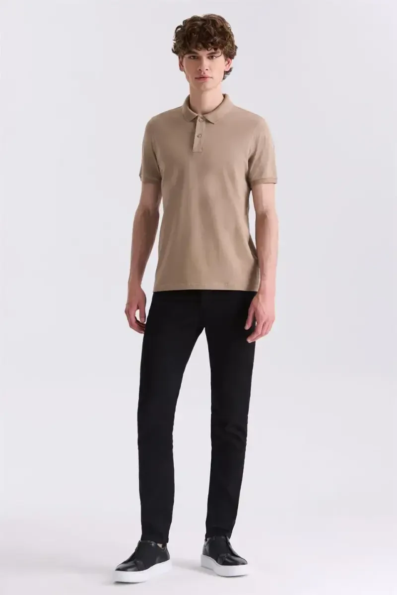 Стиль и комфорт в одной футболке: бежевая облегающая футболка с воротником-поло