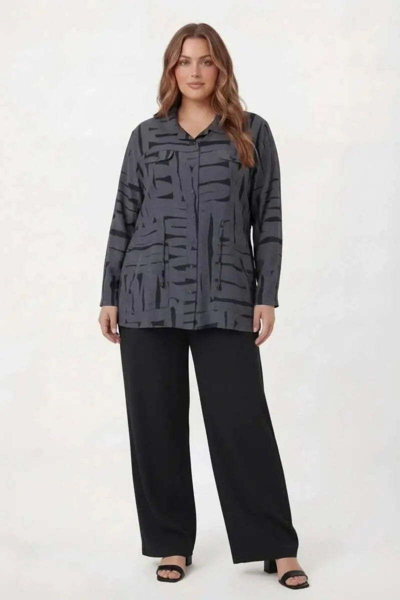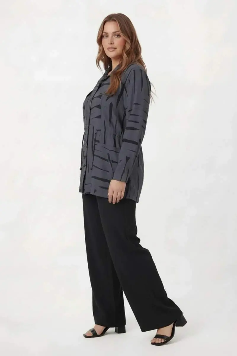 Bel Bağcıklı Büyük Beden İnce Ceket Füme