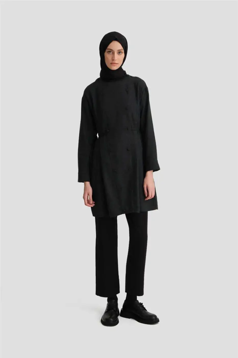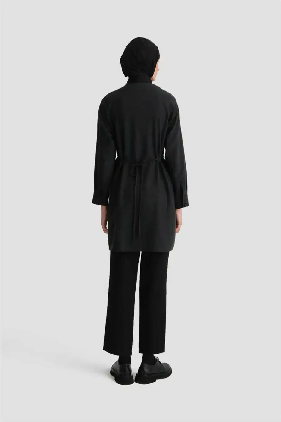Ushbu zamonaviy va funksiyonal tunika sizga Armine tomonidan taqdim etiladi. Uning antratsit rangi har qanday kombinatsiyaga osongina mos keladi. Beli bog'lamali dizayni sizning figuringizga mukammal mos keladi va bir nechta o'lchamga javob beradi.