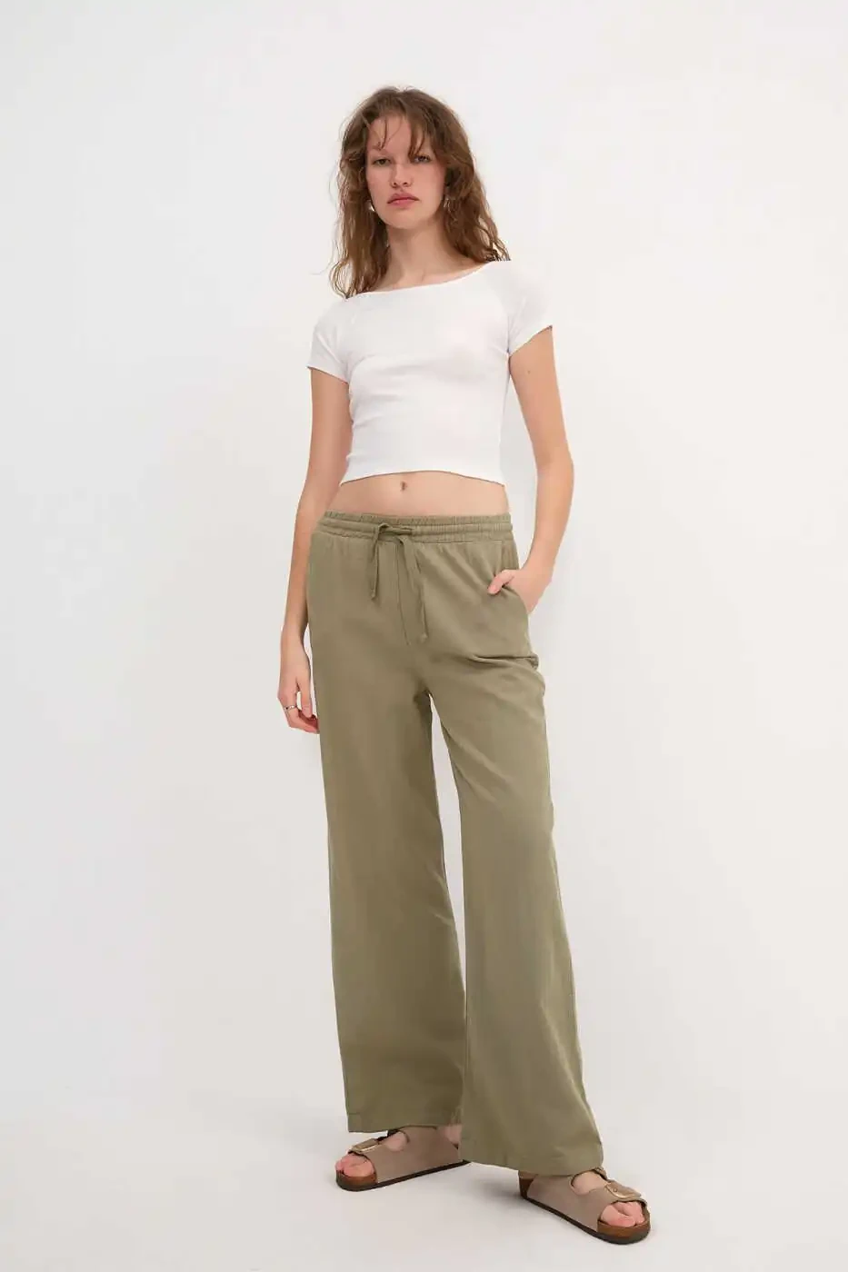 Bel bilan bogʻlanadigan keng oyoqli shim PN5118-PNC, Addax sifati bilan garderobingizning ajralmas qismiga aylanishga nomzod! Ham zamonaviy, ham qulay koʻrinishni taqdim etuvchi bu shim, kunning har bir daqiqasida sizga hamroh boʻladi. Baland bel qismi va beli rezinkali dizayni tufayli kun boʻyi qulaylikni his etasiz, keng oyoqli (wide leg) modeli bilan ham trendlarni yaqindan kuzatib borasiz. Beldan bogʻlanadigan detali shimga alohida havo beradi, choʻntakli boʻlishi ham foydalanish qulayligini taʼminlaydi. Kundalik kombinatlaringizda ham, yanada maxsus onlaringizda ham bemalol tanlashingiz mumkin boʻlgan bu shim, uslubingizni bir qadam oldinga olib chiqadi. Addaxning ehtiyotkorlik bilan ishlashi va sifatli materiallardan foydalanishi bilan ishlab chiqarilgan bu shim, uzoq muddatli foydalanishni taklif etadi. Turli ustki kiyimlar bilan osonlikcha kombinatsiyalashingiz mumkin boʻlgan Bel bilan bogʻlanadigan keng oyoqli shim PN5118-PNC, har qanday uslubga moslasha oladigan koʻp qirrali buyum. Ofisda zamonaviy bluzka bilan, dam olish kunlari esa qulay futbolka bilan kombinatsiyalab, turli uslublar yaratishingiz mumkin. Matosining tuzilishi teringizga yoqimli his beradi, harakat erkinligingizni ham cheklamaydi. Bu shim, faqatgina bir kiyim emas, balki ayni paytda hayot tarzini taklif etadi. Oʻzingizni yaxshi his etish va uslubingizni aks ettirish uchun toʻgʻri tanlov! Addax sifati bilan ishlab chiqarilgan bu shimni uzoq yillar davomida zavq bilan foydalanishingiz mumkin. Garderobingizning qutqaruvchisi boʻladigan bu buyumni qoʻldan boy bermang. Chiqillik va qulaylikni birgalikda taqdim etuvchi Bel bilan bogʻlanadigan keng oyoqli shim PN5118-PNC, tarzingizni eng yaxshi tarzda ifodalashingizga yordam beradi. Har mavsumda kiyiladigan tuzilishi bilan shkafingizning ajralmas qismiga aylanadi. Turli rang variantlari bilan taqdim etilgan bu shimni, oʻz tarzingizga eng mos rangda tanlashingiz va kombinatlaringizni boyitishingiz mumkin. Addax, har doim eng trend va sifatli mahsulotlarni taqdim etishda davom etadi. Bu shim ham buning eng goʻzal namunalaridan biri. Ham oʻzingizga, ham yaqinlaringizga olishingiz mumkin boʻlgan ajoyib sovgʻa varianti boʻlgan Bel bilan bogʻlanadigan keng oyoqli shim PN5118-PNC bilan chiqligingizni va qulayligingizni bir yuqori darajaga koʻtaring. Addax kafolati bilan ishlab chiqarilgan bu shim, sifat va uslub izlayotganlarning tanlovi boʻladi.
