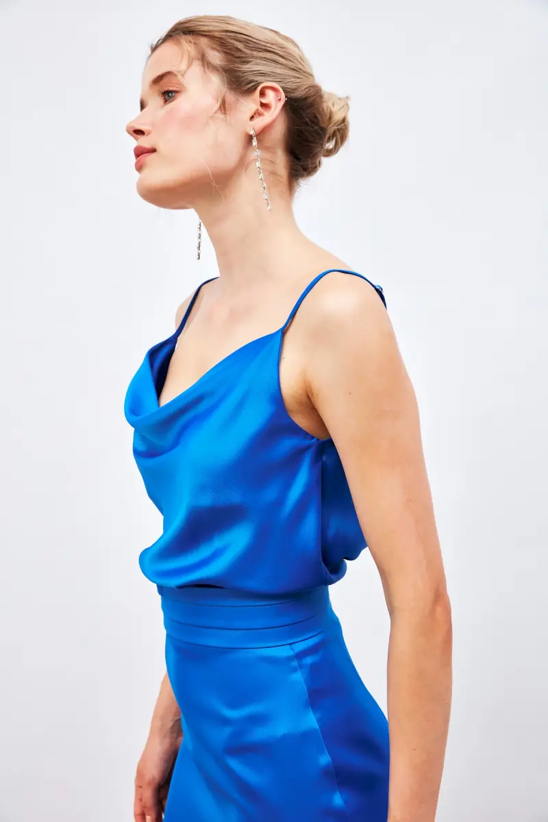 Bel Detaylı Mini Saten Etek - Sax Mavi-SAX MAVİ