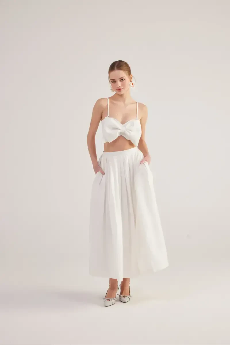 Beli Kemerli Cepli Astarlı Uzun Olivia Etek Beyaz, şıklığı ve rahatlığı bir araya getiren, her gardırobun vazgeçilmezi olacak bir parçadır. İnce dokuma kumaşı sayesinde gün boyu hafif ve konforlu bir kullanım sunarken, pamuk ve polyester karışımı materyali nefes alabilirlik ve dayanıklılık sağlayarak uzun ömürlü bir kullanım deneyimi sunar. Her yaş grubuna hitap eden zamansız tasarımıyla geniş bir kullanıcı yelpazesine sahip olan bu etek, basic silueti ve regular kalıbı sayesinde günlük kullanım için idealdir. İster iş ortamında şıklığınızı korumak isteyin, ister günlük aktivitelerinizde rahatlığınızdan ödün vermek istemeyin, Olivia Etek size eşlik edecektir. Düz deseniyle sade ve zamansız bir görünüm elde ederken, basic koleksiyonun bir parçası olarak gardırobunuzdaki diğer parçalarla kolayca kombinleyebilirsiniz. Maxi boyu ile hem şık hem de modern bir duruş sergileyen bu etek, iç göstermeyen yapısıyla da güvenli bir kullanım sunar. Yüksek bel tasarımı sayesinde vücut hatlarınıza uyum sağlar ve zarif bir siluet oluşturarak görünümünüzü tamamlar. Kemer detayı ve cepleri ise hem şıklığına şıklık katar hem de kullanışlılık sunar. Astarlı yapısı sayesinde daha tok bir duruş sağlar ve konforu artırır. Beli Kemerli Cepli Astarlı Uzun Olivia Etek Beyaz, sadece bir etek değil, aynı zamanda stilinizi yansıtan ve size güven veren bir parçadır. Her ortamda dikkatleri üzerinize çekecek, şıklığınızı ve zarafetinizi ön plana çıkaracaktır. Bu etek ile kendinizi hem rahat hem de şık hissedeceksiniz.