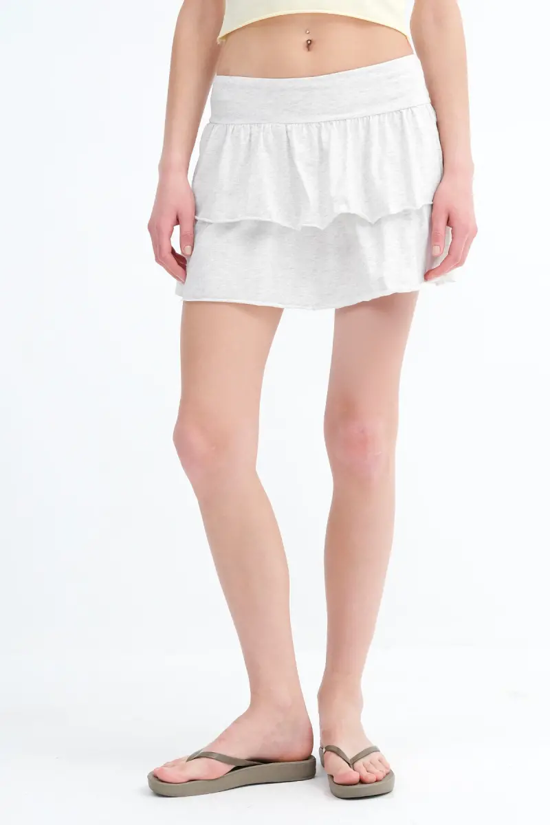 Beli Lastikli Fırfırlı Mini Etek E1555-K3-Kar Melanj