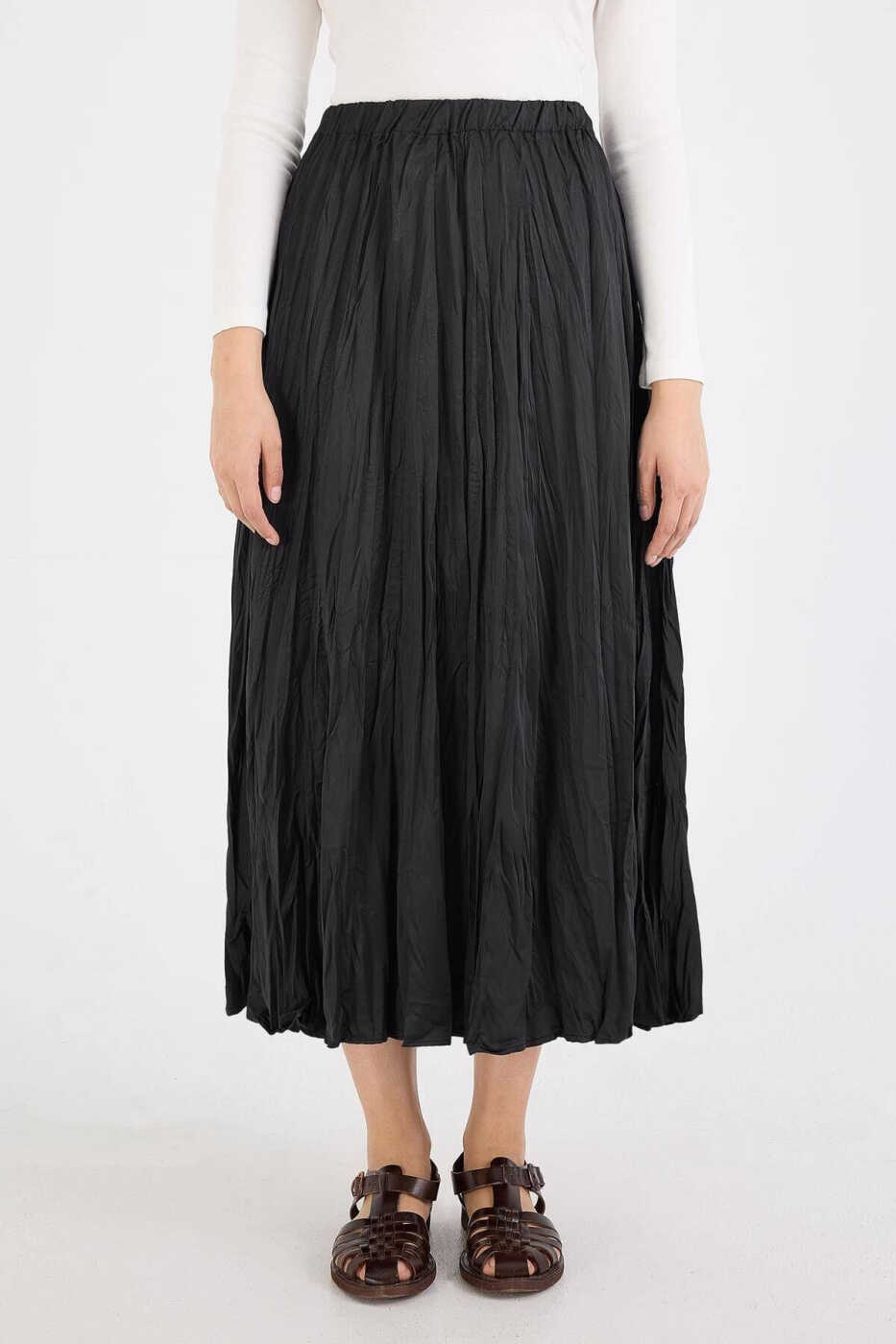 Şıklığı ve rahatlığı bir araya getiren Beli Lastikli Kırışık Görünümlü Uzun Etek E16125-b5 ile tanışın! Addax tarafından size özel olarak sunulan bu muhteşem etek, gardrobunuzun vazgeçilmez parçalarından biri olmaya aday. Kırışık saten görünümüyle dikkat çeken eteğimiz, zarif ve modern bir tarz yaratmanıza yardımcı olacak. Astarsız tasarımıyla yaz aylarında serin ve rahat bir kullanım sunarken, uzun boyuyla da şıklığınıza şıklık katacak. Beli lastikli yapısı sayesinde gün boyu rahatlıkla taşıyabileceğiniz bu etek, her türlü kombininize uyum sağlayacak çok yönlü bir parçadır. İş toplantılarınızdan günlük aktivitelerinize, özel davetlerden akşam yürüyüşlerinize kadar her an yanınızda olacak. Yüksek kaliteli malzemelerden üretilen eteğimiz, uzun süreli kullanım için dayanıklıdır ve formunu korur. Manken üzerindeki ürün standart bedendi olup, numune beden ölçüleri verilmiştir. Ancak, ışık farklılıklarından dolayı ürün çekimlerinde renklerde küçük farklılıklar olabileceğini lütfen göz önünde bulundurun. 15 günlük ücretsiz iade seçeneği ile gönül rahatlığıyla satın alabilir, sizin için en uygun bedeni seçebilirsiniz. Stoklarımız sınırlı olduğundan, bu şık eteği hemen sepetinize eklemenizi öneririz!