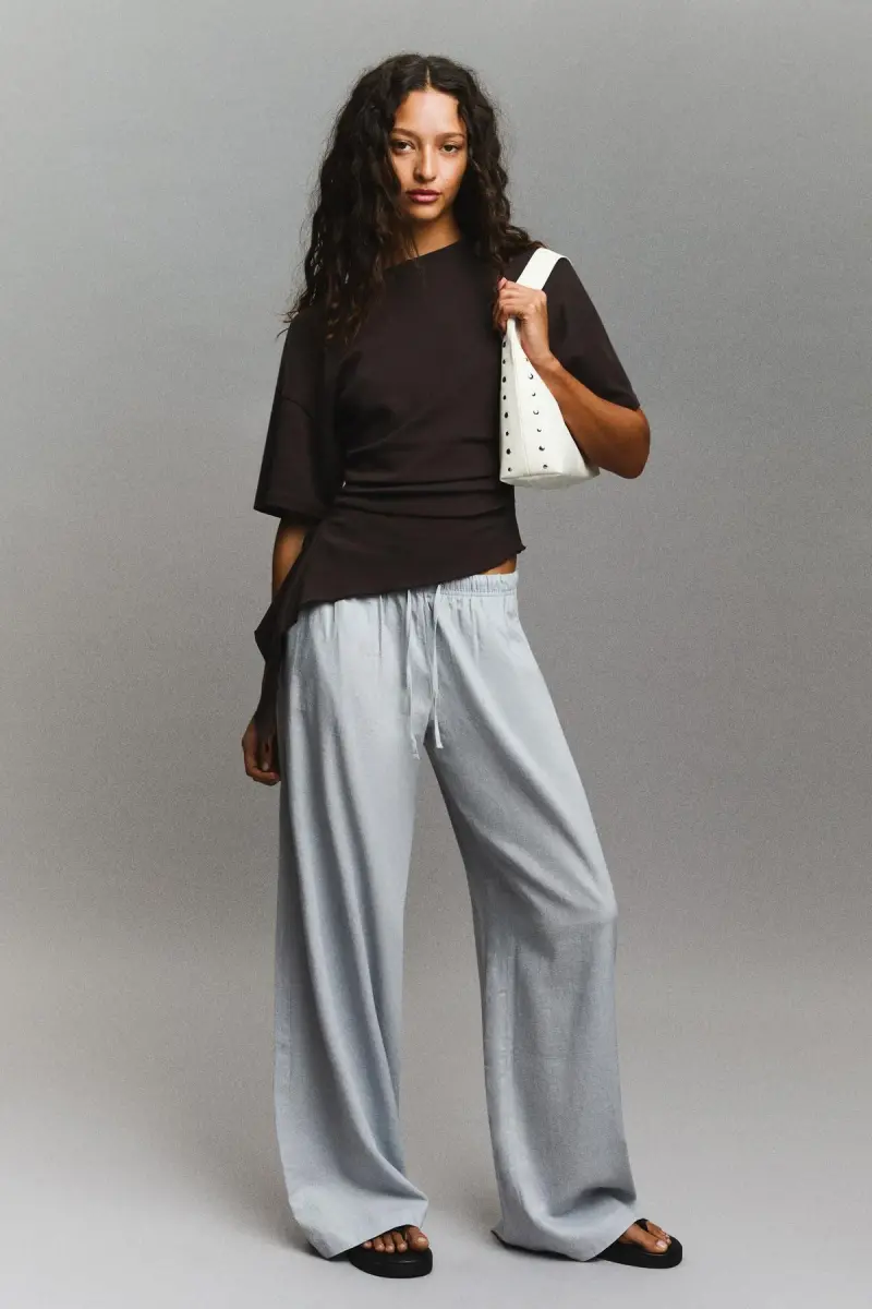 Bu ürün BERSHKA tarafından gönderilecektir.Kampanya fiyatından satılmak üzere 50 adetten fazla stok sunulmuştur.Bir ürün, birden fazla satıcı tarafından satılabilir. Birden fazla satıcı tarafından satışa sunulan ürünlerin satıcıları ürün için belirledikleri fiyata, satıcı puanlarına, teslimat statülerine, ürünlerdeki promosyonlara, kargonun bedava olup olmamasına ve ürünlerin hızlı teslimat ile teslim edilip edilememesine, ürünlerin stok ve kategorileri bilgilerine göre sıralanmaktadır.Bu üründen en fazla 10 adet sipariş verilebilir. 10 adedin üzerindeki siparişleri Trendyol iptal etme hakkını saklı tutar. Belirlenen bu limit kurumsal siparişlerde geçerli olmayıp, kurumsal siparişler için farklı limitler belirlenebilmektedir.15 gün içinde ücretsiz iade. Detaylı bilgi için [page="return_conditions"]tıklayın .Beli lastikli keten pantolon72% viskoz - 28% ketenMERDANELI TEMIZLEME YAPILAMAZ,BEYAZLATICI KULLANILMAZ ,KURU TEMİZLEME YAPILAMAZ,30ºC DE MAKİNADA HASSAS YIKAMA,110ºC DERECEDE ÜTÜLEME