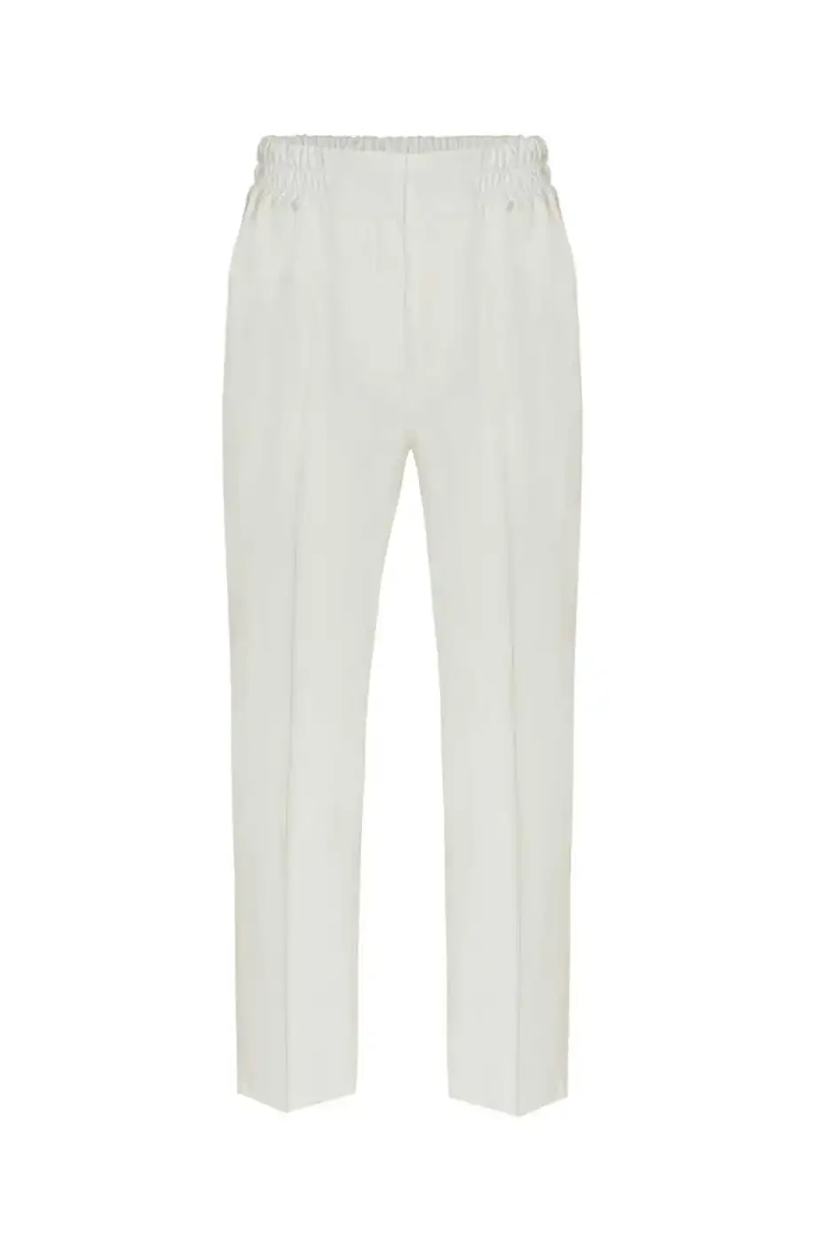 Elastic Waist Relaxed Fit Trousers - Ecru | Comfortable and Stylish