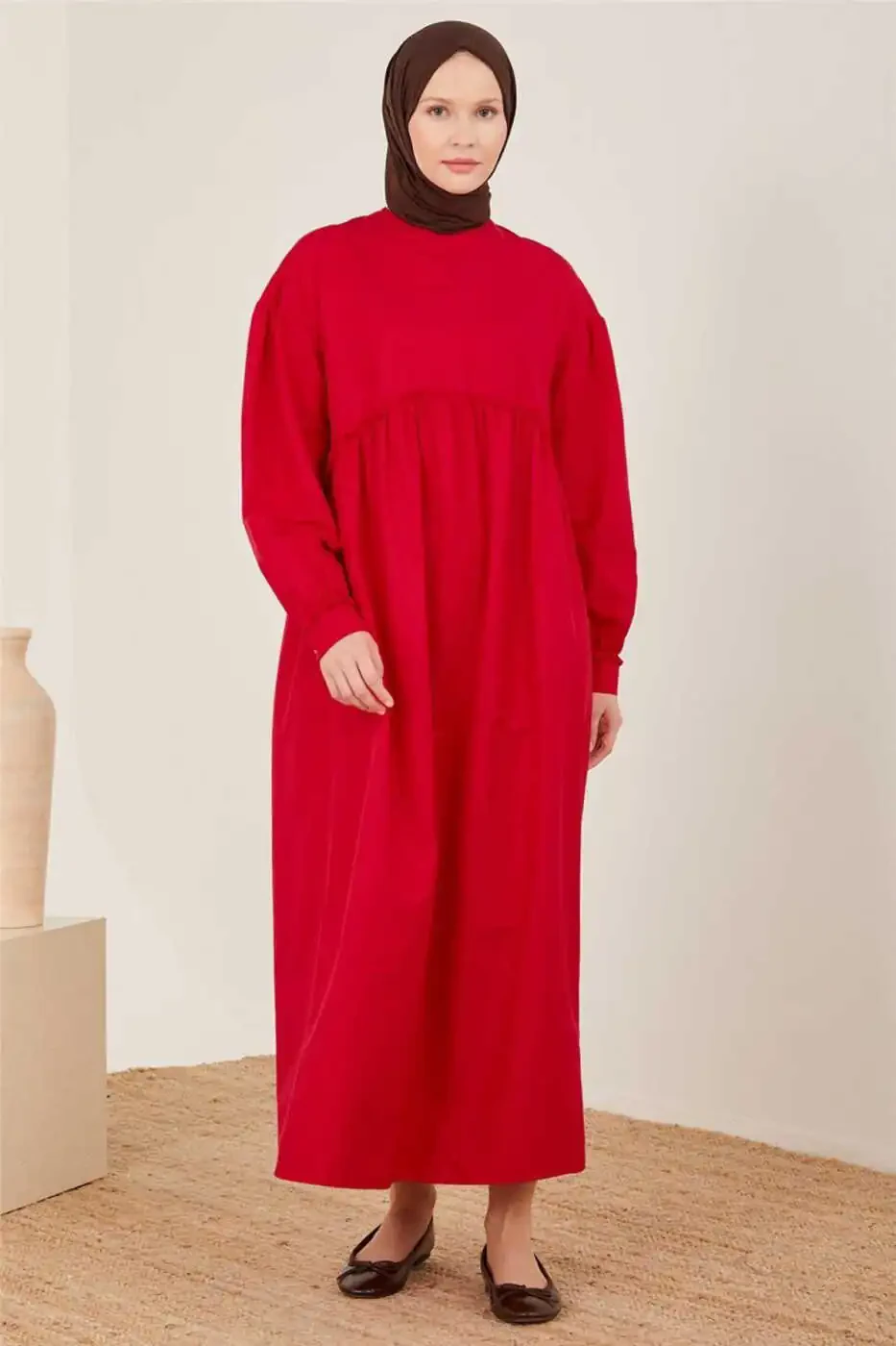 Yeng va bel qismi jiyakli paxtadan tikilgan ko'ylak, Armine, Uzun yengli ko'ylak, Qulay ko'ylak, Jozibali ko'ylak