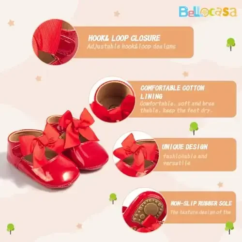 Bellocasa Baby Mary Jane Flats combine elegance and comfort to accompany your little princesses' first steps. These adorable flats are specially designed with babies' delicate feet in mind. With their soft texture, non-slip sole, and easy-to-wear design, they provide comfort for your baby and make life easier for parents.Bellocasa Baby Mary Jane Flats help keep your baby's feet dry and comfortable all day long thanks to their high-quality PU leather upper and breathable cotton lining. Their flexible and lightweight construction does not restrict your baby's natural movements and supports healthy growth. Ideal for tiny feet, these flats ensure your baby feels comfortable with every step.These stylish flats complement every outfit with their cute bow detail. They highlight your baby's elegance on all special occasions, from parties to weddings, photo shoots to family gatherings. They are even an ideal option for little ones who want to look stylish while having fun at home. Bellocasa Baby Mary Jane Flats will reflect your baby's style and attract admiring glances.One of the most important features of Bellocasa Baby Mary Jane Flats is their safety. The non-slip sole allows your baby to play safely on the floor and explore the world. Anti-slip points effectively prevent your baby from falling and allow them to move freely. These flats have passed safety tests and do not contain any substances that could harm your baby's health.Thanks to the adjustable hook-and-loop strap design, these flats are extremely easy to put on and take off. They fit your baby's feet perfectly and do not come off even when moving. This feature provides a great advantage, especially for active babies.Bellocasa Baby Mary Jane Flats are also a great gift option. They are an ideal choice for making your loved ones happy on special occasions such as baby showers, birthdays, and christenings. With their stylish design, comfortable construction, and safe features, these flats will appeal to both baby and parents.Bellocasa Baby Mary Jane Flats are also very easy to care for. The leather upper can be easily cleaned with just a simple wipe. This feature provides great convenience, especially for busy parents. Made from durable materials, these flats will stay as new as the first day for many years.As a result, Bellocasa Baby Mary Jane Flats are an excellent choice that combines elegance, comfort, and safety. They will accompany your baby as they take their first steps and help them create unforgettable memories. These cute flats will be an indispensable part of your baby's wardrobe and will always make them feel special.