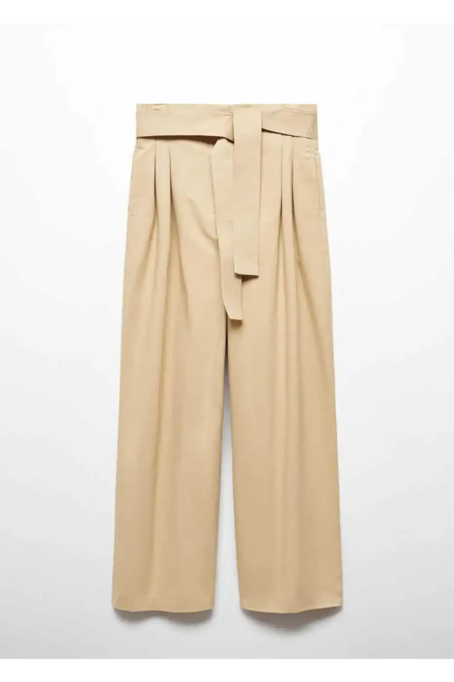 **Belted Paperbag Pants**Elevate your style with these stunning paperbag pants. Crafted from a blend of 98% cotton and 2% elastane, they offer both comfort and sophistication.The high waist and zip-and-button closure ensure a perfect fit. The tie-up belt allows for easy adjustment.The straight-leg design and decorative stitching details add a touch of sophistication to your look. Two side pockets and two back patch pockets keep all your essentials organized.**Features:*** 98% cotton, 2% elastane* High waist* Paperbag waist* Two side pockets* Two back patch pockets* Zip-and-button closure* Tie-up belt* Decorative stitching* Inseam: 77.9 cm* Side seam length: 114.9 cm**Care Instructions:*** Machine wash cold (max 30°C)* Do not bleach* Iron at low heat (max 110°C)* Dry clean with perchlorethylene* Do not tumble dry