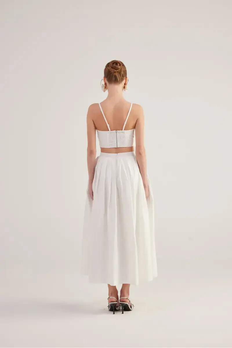 The White Belted, Pocked, Lined Long Olivia Skirt is a piece that combines elegance and comfort, and will be indispensable in every wardrobe. Thanks to its fine woven fabric, it offers a light and comfortable use throughout the day, while its cotton and polyester blend material provides breathability and durability, offering a long-lasting usage experience. Appealing to all age groups with its timeless design, this skirt has a wide user base, and is ideal for daily use thanks to its basic silhouette and regular fit. Whether you want to maintain your elegance in the workplace or do not want to compromise on your comfort in your daily activities, the Olivia Skirt will accompany you. While achieving a simple and timeless look with its plain pattern, you can easily combine it with other pieces in your wardrobe as part of the basic collection. This maxi-length skirt offers both a stylish and modern look, and also offers safe use with its non-see-through structure. Thanks to its high-waisted design, it adapts to your body lines and completes your look by creating an elegant silhouette. The belt detail and pockets add elegance and offer functionality. Thanks to its lined structure, it provides a more substantial stance and increases comfort. The White Belted, Pocketed, Lined Long Olivia Skirt is not just a skirt, but also a piece that reflects your style and gives you confidence. It will attract attention in every environment and highlight your elegance and grace. With this skirt, you will feel both comfortable and stylish.