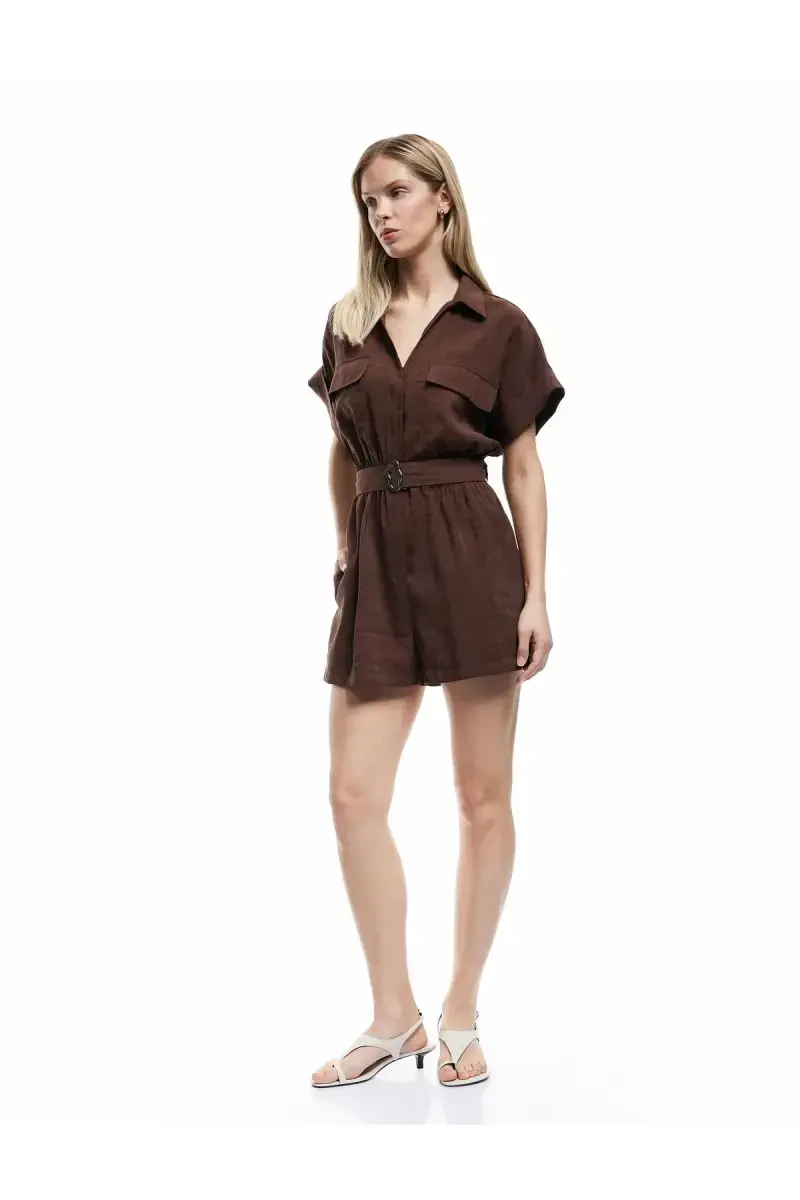 Belted Pocketed Shirt Collar Short Sleeve Modal Fabric Short Jumpsuit - Coffee is a special design that combines elegance and comfort, offered with Koton assurance. This jumpsuit is an ideal option for women who want to look stylish and not compromise on their comfort in hot weather. While offering a classic and modern look with its shirt collar and short sleeve design, it subtly reveals your body lines with its belt detail. Pocket details increase usability while adding movement to the overall design of the jumpsuit. You will feel comfortable all day long thanks to the soft texture of the modal fabric. The warm and natural tone of the coffee color allows you to easily adapt to any environment and create different combinations. Whether for daily use or a special occasion, you can always look stylish and well-groomed with this jumpsuit. Produced in accordance with Koton's quality standards, this jumpsuit is carefully designed for long-lasting use. This jumpsuit, which will be one of the indispensable pieces of your wardrobe, will help you reflect your style and have a comfortable day. The S size jumpsuit on the model creates a stylish silhouette by fitting the body perfectly. The coffee color of the jumpsuit is a perfect choice for those who love earth tones and can be easily combined with different accessories. Whether you create a casual style with sneakers or a more elegant look with heels, this jumpsuit will accompany you in any situation. Let your style speak with this special design jumpsuit offered by Koton and attract attention in every environment. This product can be offered for sale by more than one seller. Sellers are listed by taking into account the price of the product, seller scores, delivery status, promotions, shipping status, delivery speed, stock status and category information. A maximum of 10 of this product can be ordered. Orders over 10 units may be canceled by Trendyol. This limit is not valid for corporate orders, different limits may be determined for corporate orders. There is a free return option within 15 days.