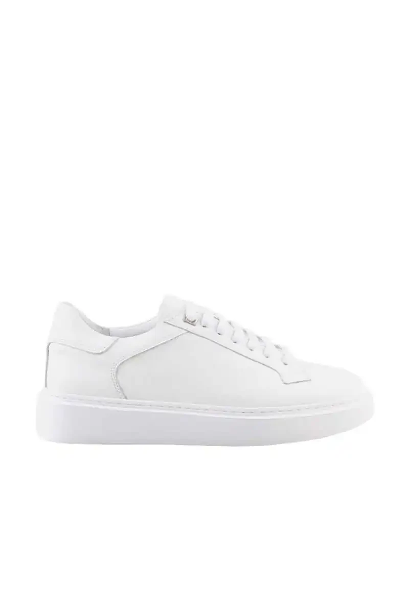 Белые кожаные повседневные кроссовки на шнуровке — идеальный выбор для тех, кто хочет быть одновременно удобным и стильным в повседневной суете. Благодаря высококачественным материалам и тщательному изготовлению эта обувь защитит здоровье ваших ног и дополнит ваш стиль. Эти кроссовки, изготовленные из 100% натуральной кожи, помогают вашим ногам оставаться сухими и прохладными в течение всего дня благодаря своей дышащей структуре. Естественная структура кожи позволяет обуви со временем адаптироваться к форме вашей ноги и становиться еще более удобной.Шнуровка позволяет персонализировать обувь по своей ноге. Вы можете обеспечить подходящую посадку для своей повседневной деятельности, затянув или ослабив шнурки. Мягкий наполнитель, используемый во внутренней подошве обуви, поддерживает ваши шаги и уменьшает усталость. Эта функция особенно важна во время длительных прогулок или длительного стояния на ногах.Белый цвет позволяет легко сочетать эти кроссовки с любой одеждой. Они отлично сочетаются с джинсами, шортами, юбками и даже спортивными платьями. Эта обувь, отражающая как спортивный, так и повседневный стиль, станет незаменимой частью вашего гардероба.Подошва обуви изготовлена из нескользящего и прочного материала. Это позволяет безопасно ходить по различным поверхностям. Эти кроссовки, которые могут сопровождать вас как в городе, так и в походах на природе, поддержат ваш активный образ жизни.За ними также довольно легко ухаживать: эти кожаные кроссовки можно регулярно протирать влажной тканью. Используя средства по уходу за кожей, вы можете продлить срок службы обуви и сохранить ее первоначальный вид. Чтобы сохранить яркость белого цвета, старайтесь не подвергать его воздействию прямых солнечных лучей.Белые кожаные повседневные кроссовки на шнуровке — идеальный вариант для тех, кто ищет комфорт и стиль. Благодаря качественным материалам, удобному дизайну и стильному внешнему виду эти кроссовки добавят ценности вашей повседневной жизни. Вы можете выбрать эту обувь, чтобы чувствовать себя особенным на каждом шагу и отражать свой стиль.