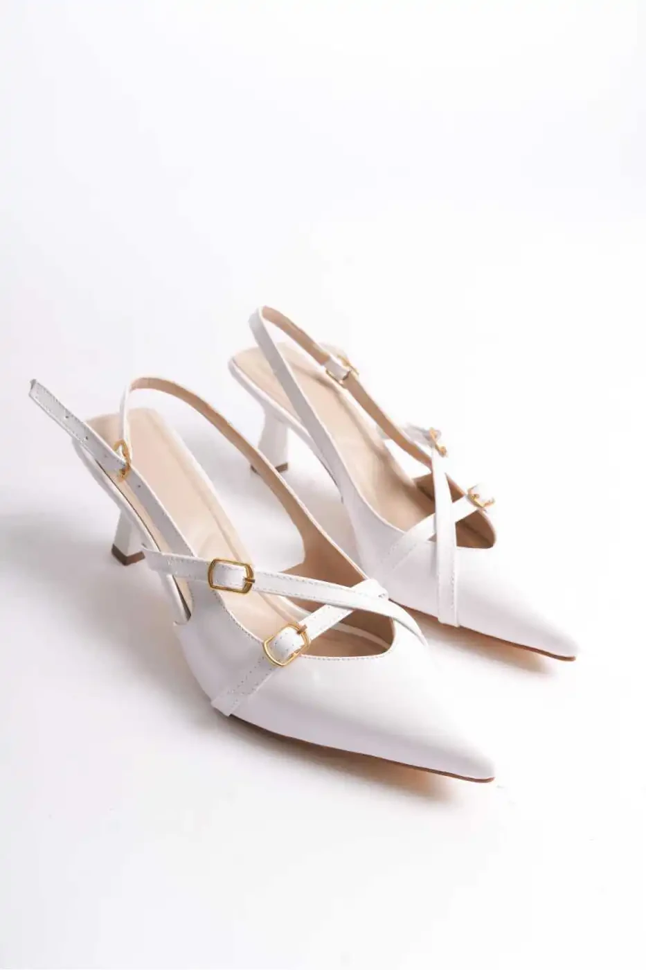 Эти белые лаковые туфли на высоком каблуке – выбор, сочетающий в себе элегантность и комфорт. Это будет идеальный выбор, чтобы сделать ваши особые дни еще более особенными.