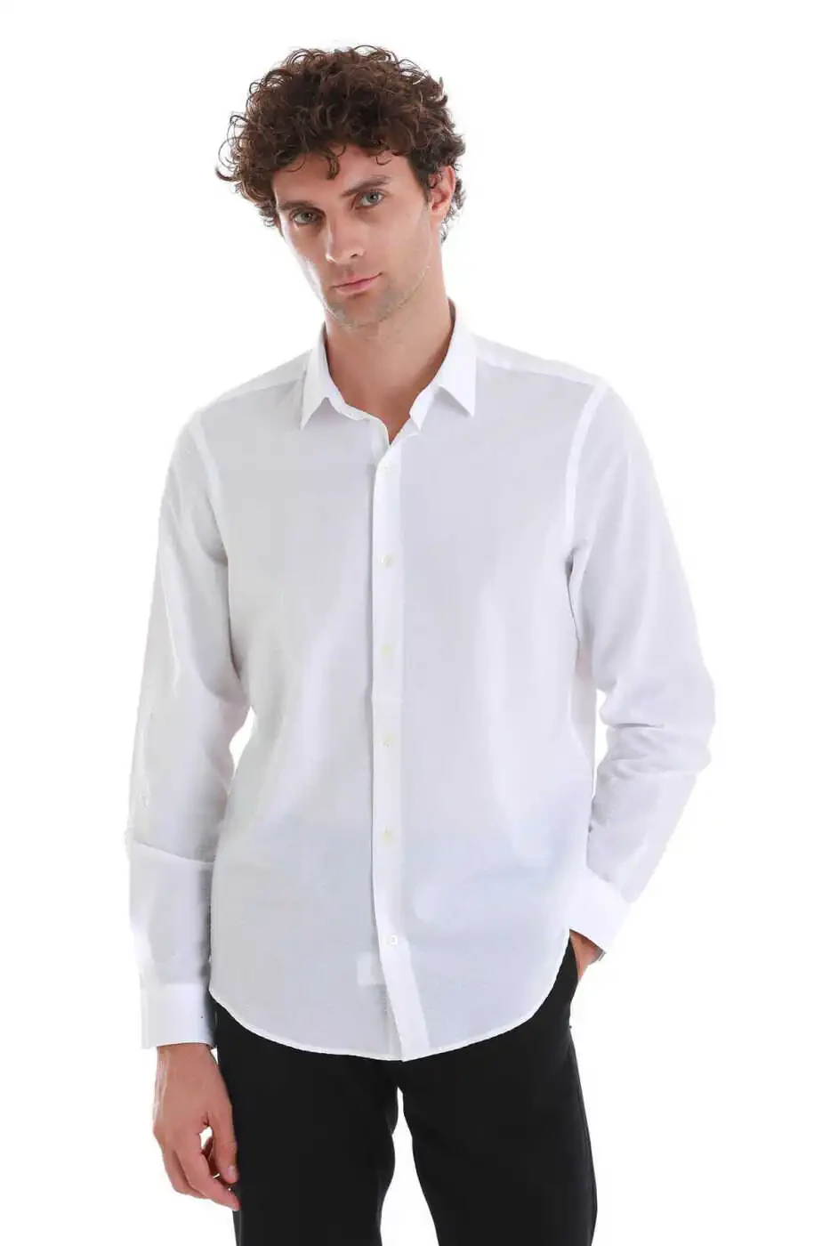 Белая хлопковая приталенная рубашка Comfort Fit с узким воротником и длинными рукавами для мужчин