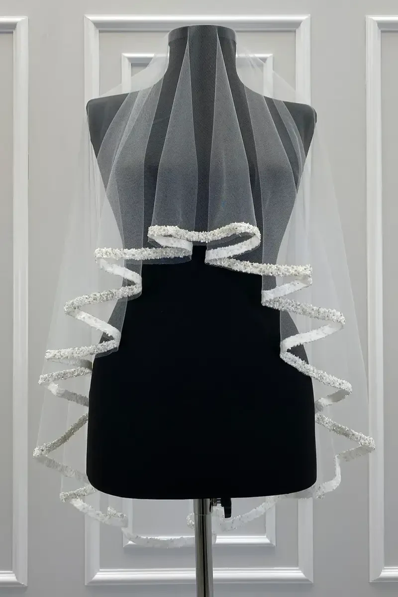 Свадебный и хенна вуаль комплект | Белый тюль, украшенный бисером и блестками | Свадьба, никах