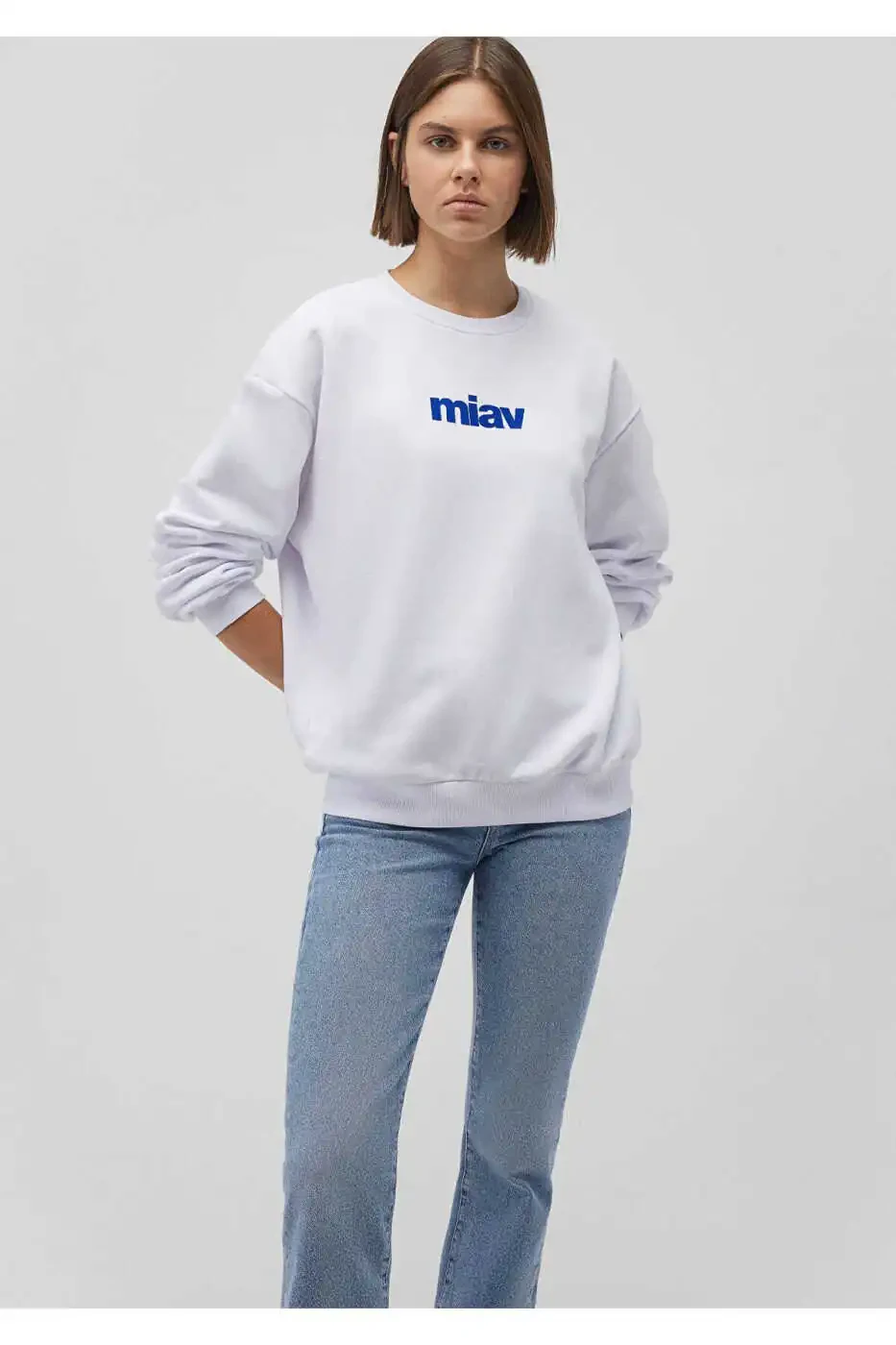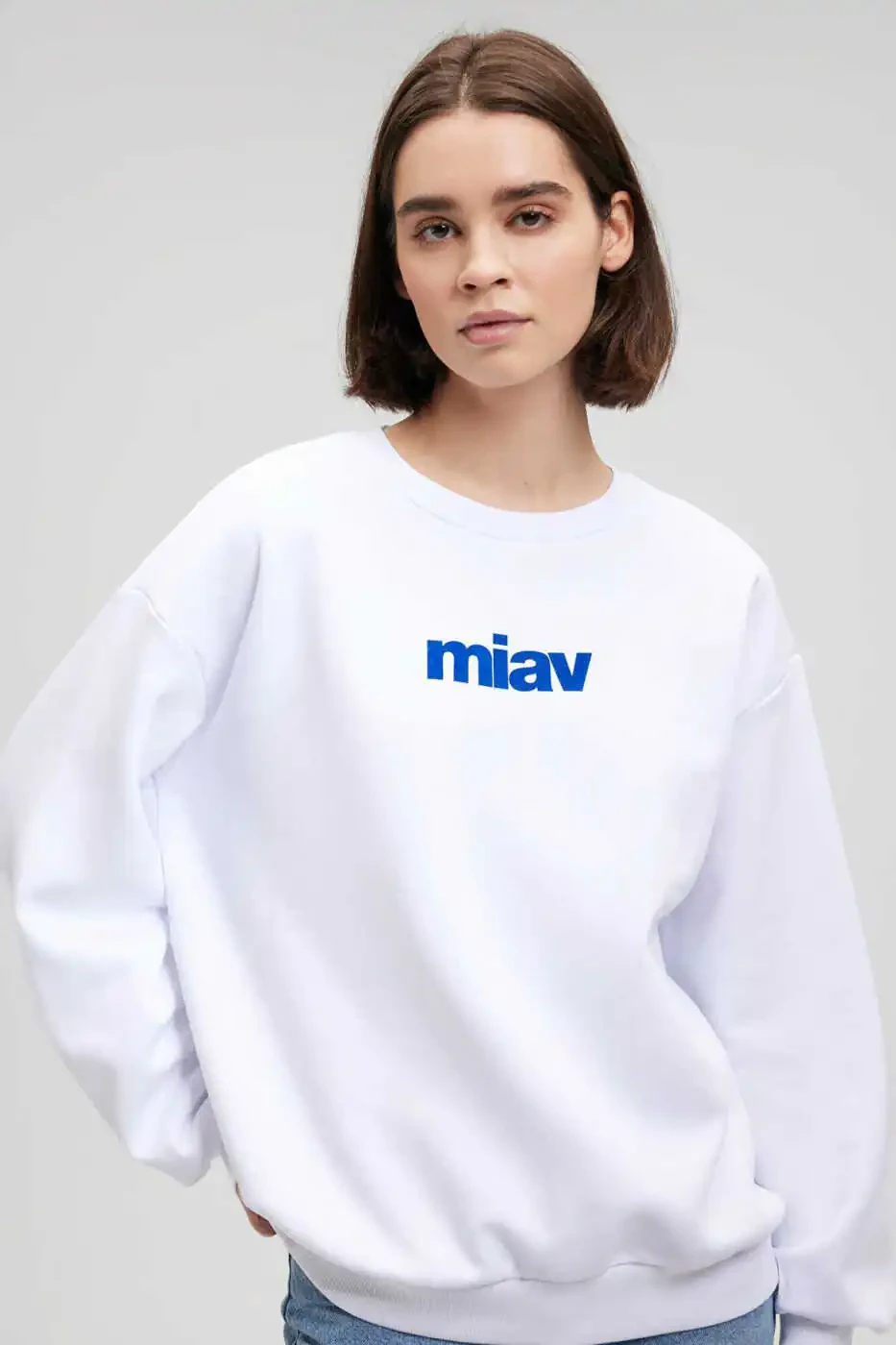 Соедините комфорт и стиль с помощью белой толстовки с принтом Miav!