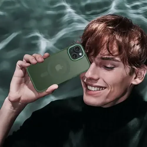 iPhone 15 case, MagSafe, midnight green, women's case, shockproof, protective case, matte case, cute design, magnetic case, drop protection
