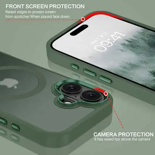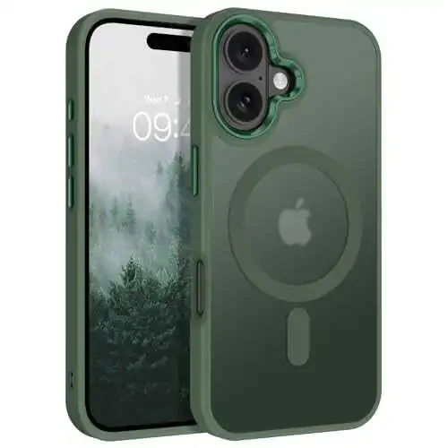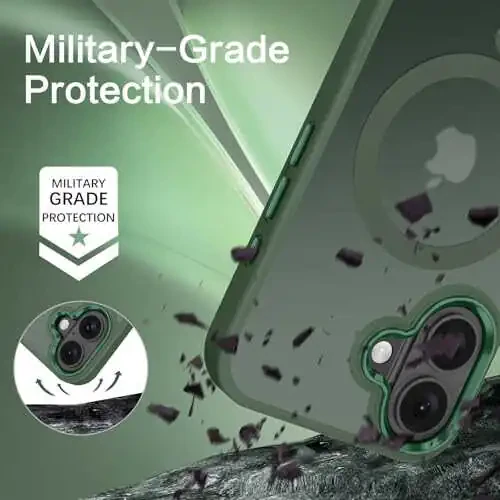 Чехол для iPhone 16: BENTOBEN, совместимый с MagSafe, амортизирующий, зеленый цвет