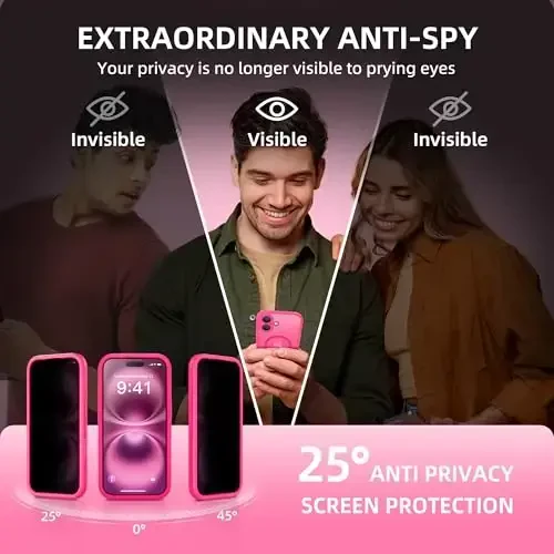 BERFY iPhone 16 g'ilofi telefoningiz va shaxsiy ma'lumotlaringizni himoya qiluvchi o'rnatilgan maxfiylik ekran himoyachisi bilan jihozlangan. Qayerga borsangiz ham, maxfiyligingizni himoya qiladi, shuningdek, tushish va chizishlardan yuqori darajada himoya qiladi. Kuchli magnitlarga ega bo'lgan ushbu magnit g'ilof xavfsiz va tez zaryadlash imkonini beradi. Hatto tez harakatlanish vaqtida ham xavfsiz tarzda yopishadi. Magnit simsiz zaryadlovchi qurilmalar, hamyonlar, avtomobil telefon ushlagichlari va boshqalar kabi MagSafe aksessuarlari bilan to'liq mos keladi. iPhone 16 telefon g'ilofi chizish va zarbalardan 360 daraja to'liq korpus himoyasini ta'minlaydigan ikki qavatli shisha old va orqa qopqoq bilan ishlab chiqilgan. Yumshoq burchaklar telefoningizni tasodifiy tushishlardan himoya qiladi. Aniq va to'g'ri kesmalar iPhone 16-ning barcha funktsiyalariga oson kirish imkonini beradi. Kengaytirilgan kamera nazorati himoyasi chang va qoldiqlar to'planishining oldini oladi va uzoq muddatli tozalik va himoyani ta'minlaydi. BERFY iPhone 16 6.1 dyuym uchun maxsus ishlab chiqilgan. Noto'g'ri model, nuqsonli g'ilof yoki shikastlangan mahsulotlar kabi kutilmagan muammolar uchun BERFY mijozlarga xizmat ko'rsatish guruhi sizga qoniqarli javob beradi. Hot Pink rangi bilan o'z uslubingizni aks ettiring va telefoningizni himoya qiling. Yuqori sifatli materiallar va zamonaviy dizayni bilan BERFY iPhone 16 g'ilofi telefoningiz uchun mukammal tanlovdir. Ham xavfsizlik, ham estetik ko'rinishni qidirayotganlar uchun ideal echim. Maxfiyligingizni himoya qilgan holda, telefoningizning barcha xususiyatlaridan uzluksiz foydalanishingiz mumkin.