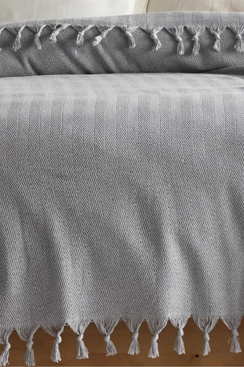 Experience a light and comfortable sleep in summer nights with the Berlino Double Bedspread. This special bedspread helps to increase your sleep quality with its structure that prevents sweating and keeps you cool in hot weather. Its high-quality cotton fabric provides a comfortable feeling by gently touching your skin. With its 200x230 cm dimensions, it is an ideal choice for your double beds. The light gray color adds a peaceful and serene atmosphere to your bedroom and easily adapts to your decoration. The Berlino bedspread not only offers a comfortable sleep, but also complements the aesthetics of your bedroom with its stylish design. The product's easy-to-wash and ironable feature provides practicality in daily use. The Berlino Double Bedspread is an excellent choice for those looking for a cool and comfortable sleep experience in the summer months. Thanks to its high-quality material structure and careful workmanship, it offers long-lasting use. Meet the Berlino bedspread to wake up rested and refreshed in the mornings. This bedspread is not only a sleep textile product, but also a detail that adds elegance and comfort to your bedroom. It wraps you with its soft texture, does not weigh on you with its light structure and provides a comfortable sleep. With the Berlino bedspread, you can have a cool and comfortable sleep experience even in the summer heat. The light gray color of the product offers a modern and minimalist look, while it can be easily combined with other textile products in your bedroom. The Berlino Double Bedspread is both a useful and stylish choice. Its high-quality cotton fabric allows your skin to breathe by preventing sweating and minimizes the risk of allergic reactions. In this way, it is also suitable for people with sensitive skin. The Berlino bedspread offers a cool and comfortable sleep experience in the summer months, while also positively affecting the atmosphere of your bedroom. It appeals to every taste with its simple and stylish design. It is a long-lasting and durable product that you can use for many years. Experience a peaceful and pleasant sleep on summer nights with the Berlino Double Bedspread.