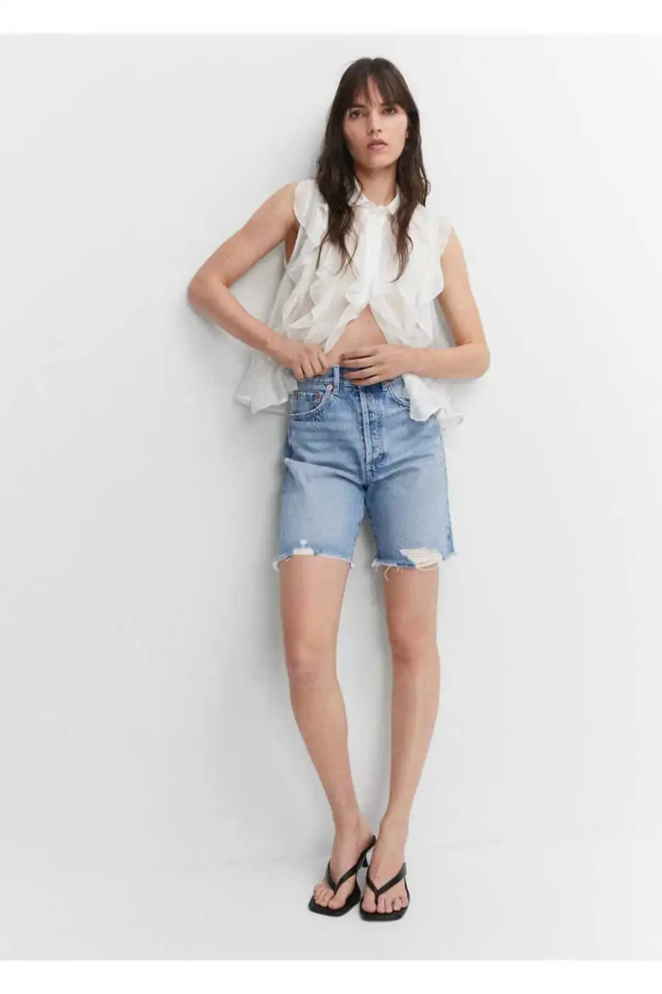 ## Bermuda Kyara### Ürün Özellikleri- **Malzeme:** Yumuşak ve rahat %100 pamuklu koton kumaş- **Model:** Düz tasarım, yüksek bel, kemer köprülü, beş cepli, düğmeli- **Detaylar:** Dekoratif yırtıklar, büyük beden seçenekleri mevcut- **Sürdürülebilirlik:** Better Cotton misyonuna katkı sağlayan pamuk kullanımı- **İç bacak uzunluğu:** 19,1 cm- **Yan dikiş uzunluğu:** 50,9 cm### Bakım Talimatları- 30°C'de kısa santrifüjle makinede yıkayın- Çamaşır suyu kullanmayın- 110°C'ye kadar ütüleyin- Kuru temizleme yapmayın- Kurutma makinesinde kurutmayın### Trendyol Özellikleri- **Gönderici:** Trendyol- **Kampanya fiyatı:** 5 adetten az stok mevcut- **Maksimum sipariş miktarı:** 10 adet- **15 gün ücretsiz iade:** İade koşulları için lütfen [buraya tıklayın](/return_conditions)