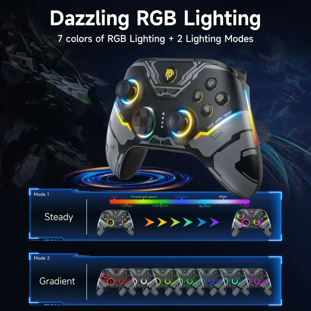 Беспроводной игровой контроллер EasySMX: многоплатформенный, точный джойстик Hall, RGB-подсветка