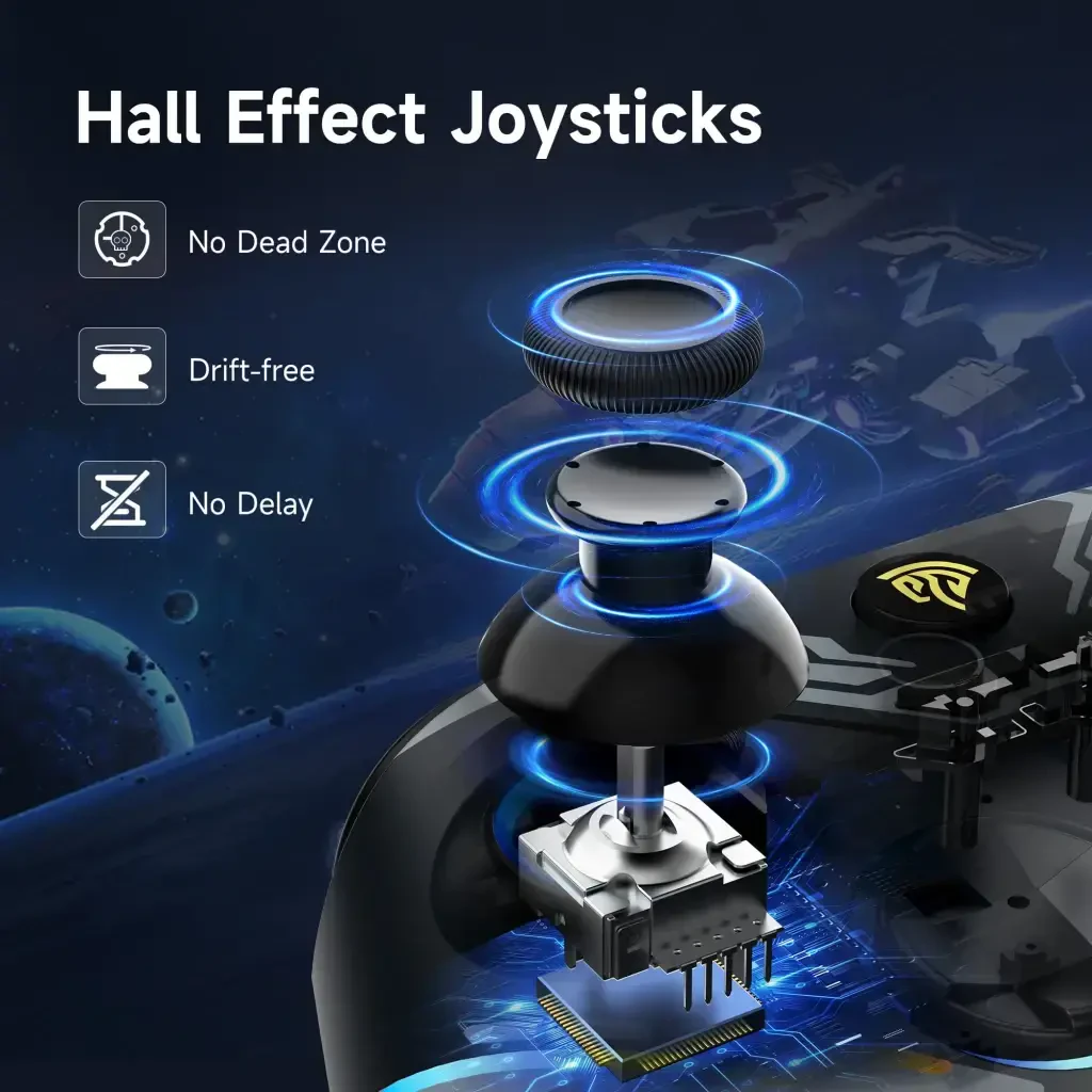 * **Высокоточный джойстик Hall:** Точные джойстики с магнитными датчиками Холла для повышенной чувствительности и точного управления.