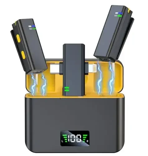 Шумоподавление и высокое качество звука: беспроводной петличный микрофон с интеллектуальной технологией шумоподавления обеспечивает чистый и высококачественный звук. Независимо от того, снимаете ли вы в помещении или на улице, он эффективно фильтрует фоновый шум, гарантируя, что ваш голос всегда будет кристально чистым. Идеально подходит для интервью, видеоблогов, прямых трансляций и многого другого. 3-уровневый контроль усиления и широкая совместимость: этот мини-микрофон-петличка предлагает 3-уровневый контроль усиления для адаптации к различным звуковым средам. Вы можете легко регулировать чувствительность звука в соответствии с вашими потребностями. Он совместим с различными устройствами, такими как iPhone, iPad, телефоны Android, планшеты, камеры и ПК. Идеально подходит для создания контента на YouTube, TikTok, Facebook, Instagram и других платформах социальных сетей. 35 часов автономной работы и зарядный чехол: Беспроводная микрофонная система оснащена аккумулятором с длительным сроком службы, который обеспечивает до 35 часов непрерывного использования от одной зарядки. Портативный зарядный чехол позволяет всегда держать микрофоны заряженными. Таким образом, вам не придется беспокоиться о разрядке аккумулятора во время длительных съемок или прямых трансляций. Подключи и работай и автоматическое сопряжение: этот беспроводной петличный микрофон невероятно прост в использовании. Просто подключите приемник к устройству, и микрофон автоматически сопряжется. Приложение или Bluetooth-соединение не требуются. Конструкция «подключи и работай» экономит ваше время и позволяет сосредоточиться на создании контента. Портативный и легкий дизайн: благодаря миниатюрному и легкому дизайну вы можете брать этот петличный микрофон с собой куда угодно. Его можно легко прикрепить к одежде, и он почти не добавляет веса. Идеально подходит для создания контента или проведения интервью в дороге.