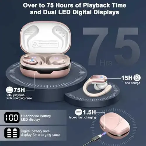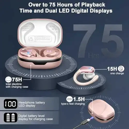 С невероятным временем автономной работы 75 часов Wireless Earbud - идеальный выбор для спорта, повседневной жизни и путешествий.