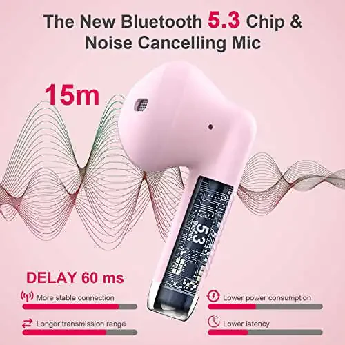 Эти беспроводные наушники — идеальный выбор для тех, кто ищет превосходное качество звука и удобство, разработанные для повышения качества вашей повседневной жизни. Благодаря технологии Bluetooth 5.3 эти наушники обеспечивают быстрое и стабильное соединение для непрерывного наслаждения музыкой. Внутриканальная конструкция идеально подходит для ваших ушей, блокируя внешний шум и максимально повышая впечатления от прослушивания музыки. Кроме того, усовершенствованный шумоподавляющий микрофон обеспечивает четкие и ясные телефонные разговоры.