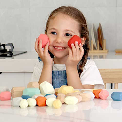 BESTAMTOY 36 PCS Wooden Sorting Stacking Rocks Stones,Sensory Toddler Toys Learning Montessori Toys, Building Blocks Game for Kids 3 4 5 6 Years Boy and Girl Birthday Gifts for Kids