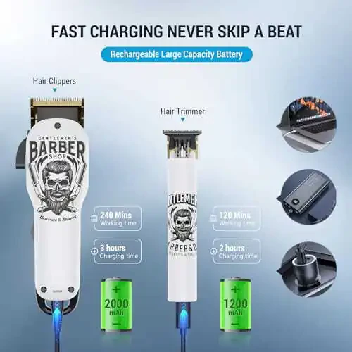 The BESTBOMB Hair Clippers & Trimmer is a professional-grade hair cutting tool that is perfect for home use. It features a powerful motor that delivers up to 8,500 strokes per minute, ensuring a smooth and precise cut. The ceramic T-blade is ultra-sharp and durable, and it can easily cut through even the thickest hair. The cordless design makes it easy to use and maneuver, and the 2000mAh battery provides up to 2 hours of runtime.
