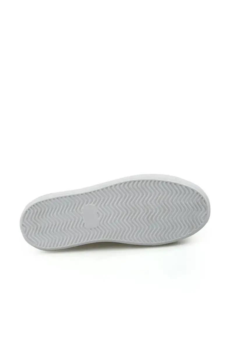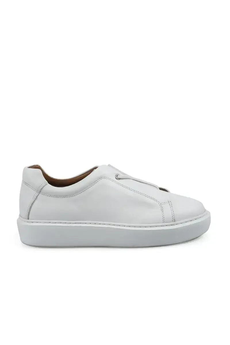 Beyaz 100% Deri Dikişli Taban Lastikli Sneaker Ayakkabı