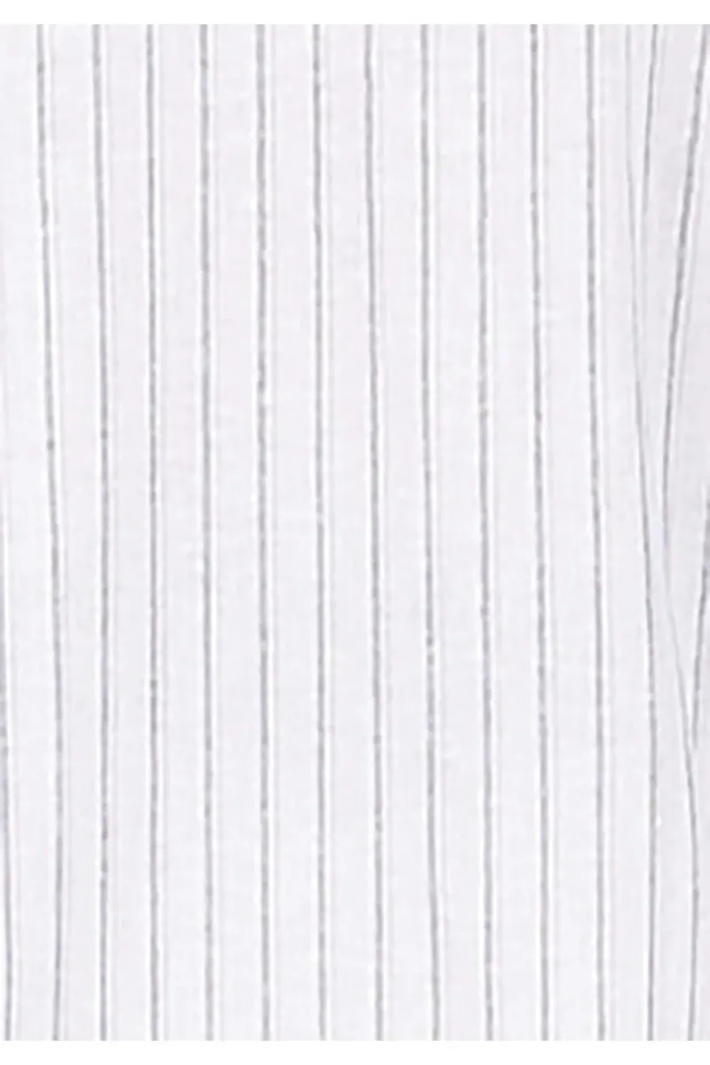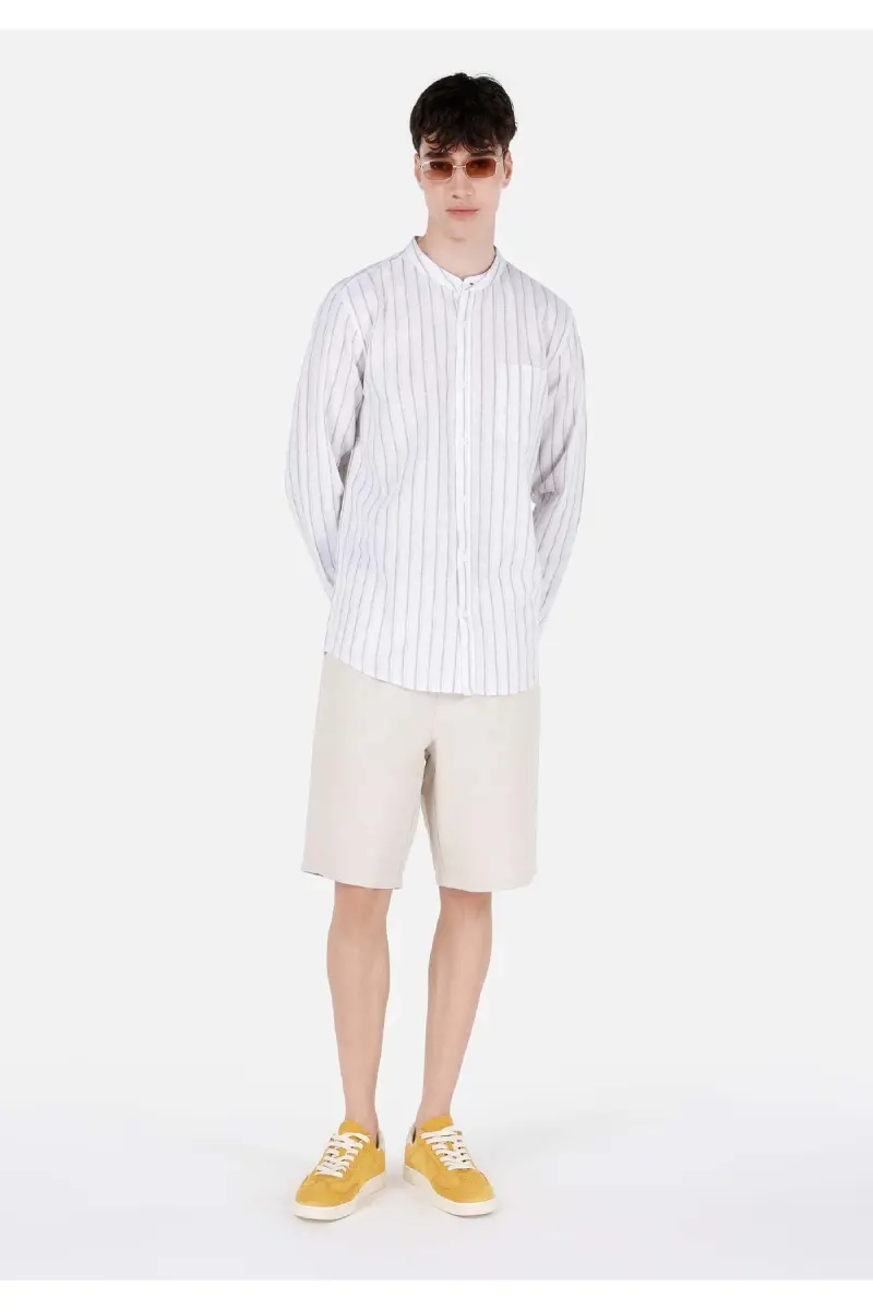 Regular Fit Hakim Yaka Çizgi Desenli Beyaz Erkek Uzun Kol Gömlek