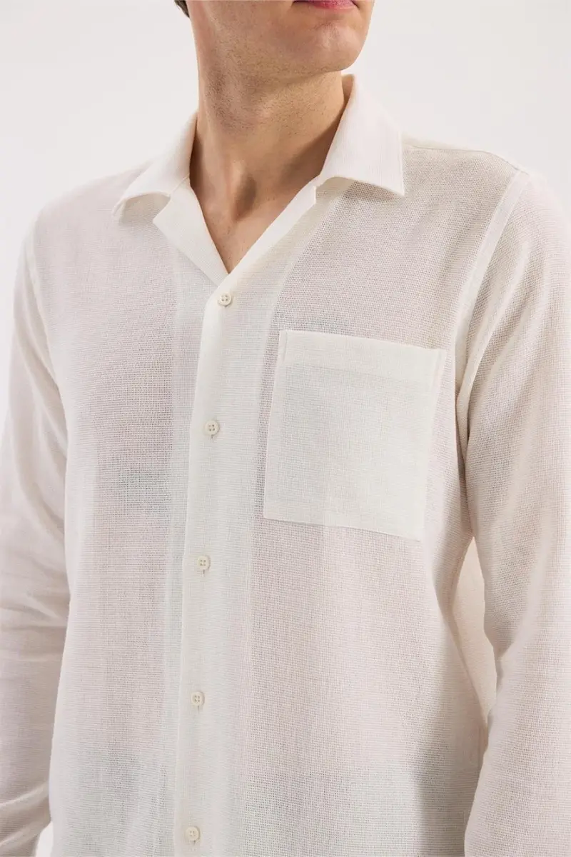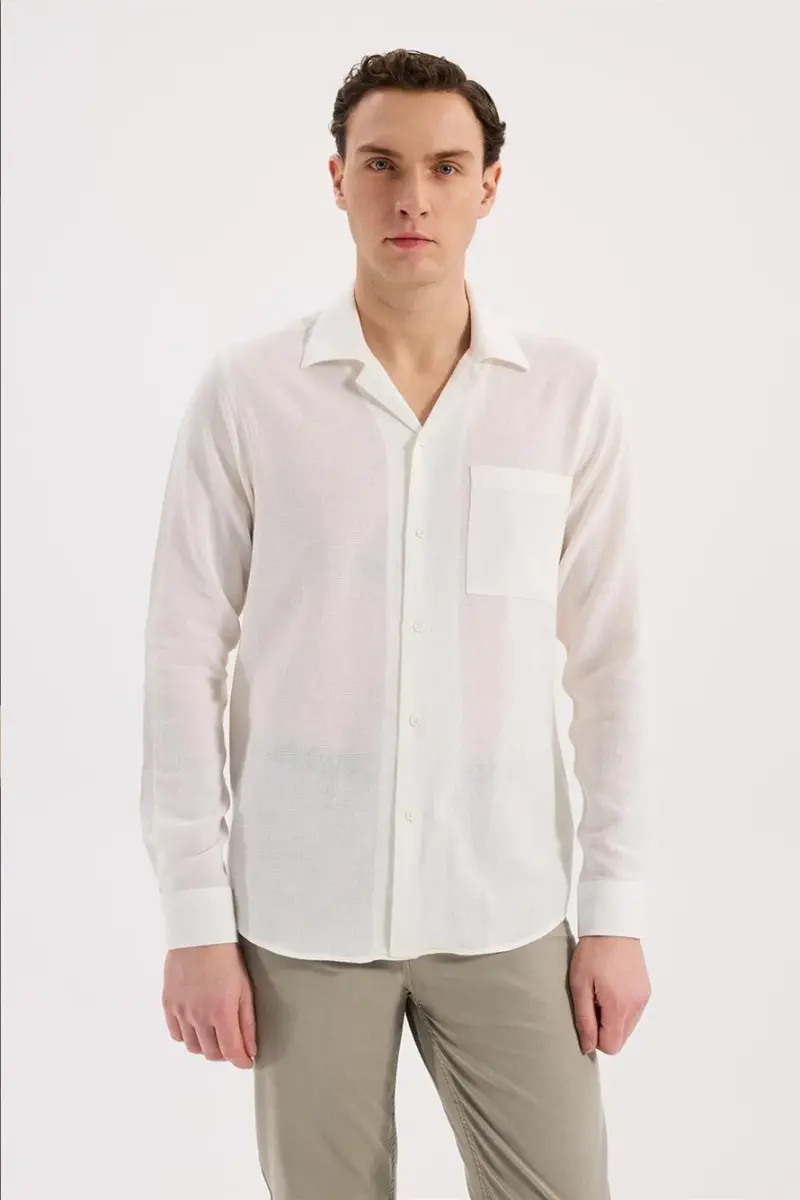 Beyaz Comfort Fit Cepli Çıtçıtlı %100 Pamuk Kot Gömlek
