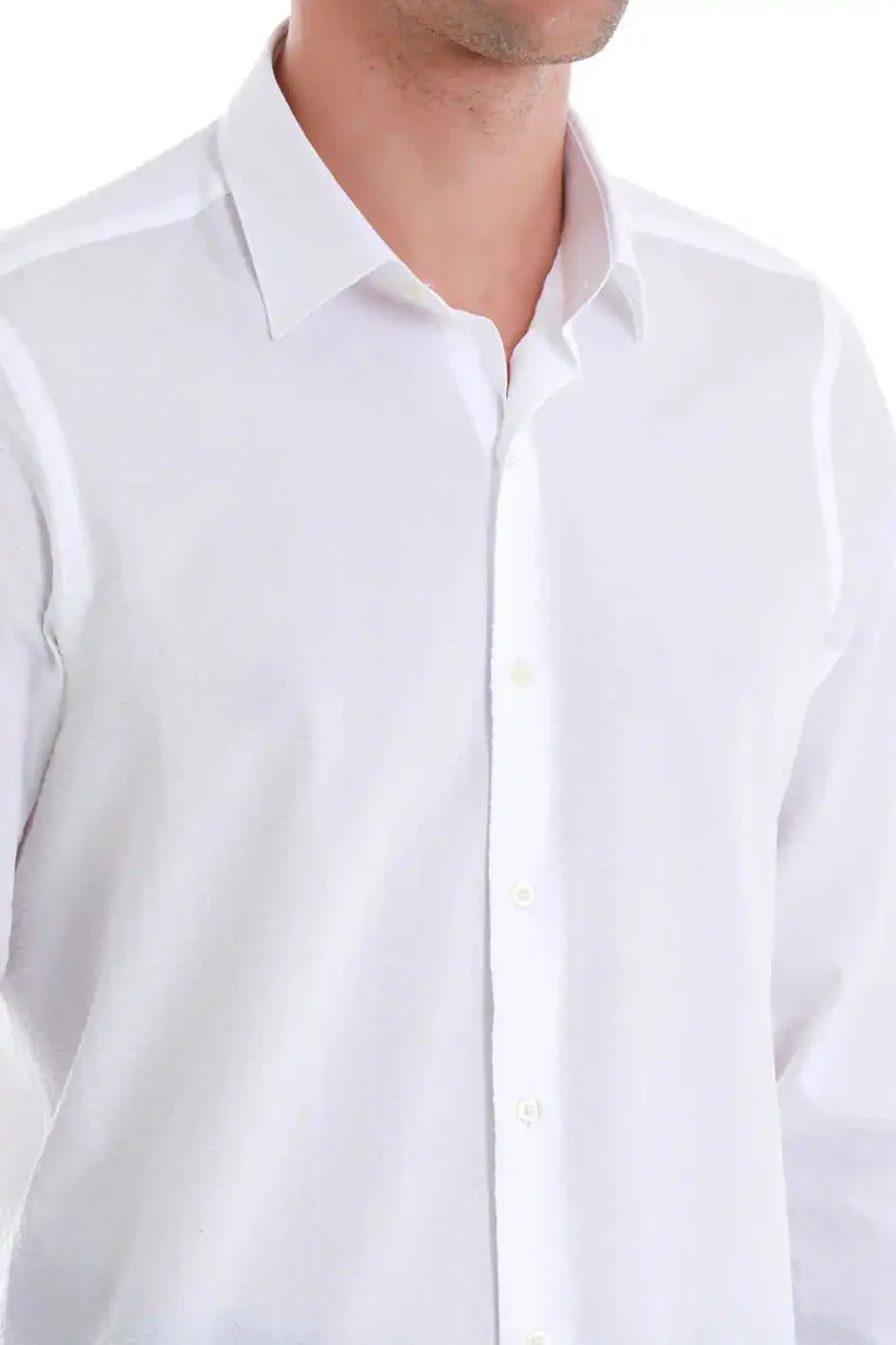 White Cotton Comfort Fit Slim Collar Long Sleeve Men's Shirt