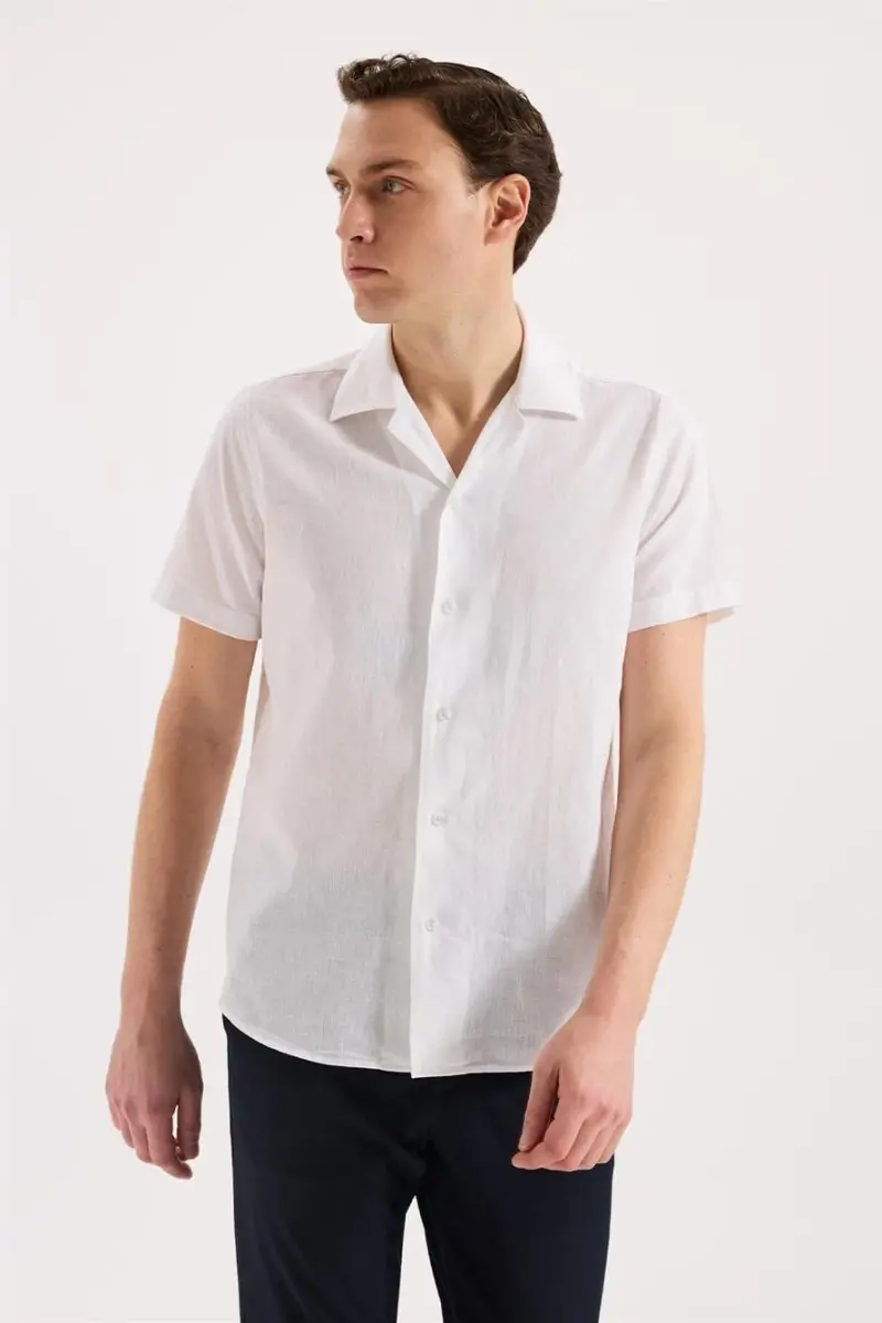 Beyaz Comfort Fit Klasik Yaka Kısa Kol Gömlek