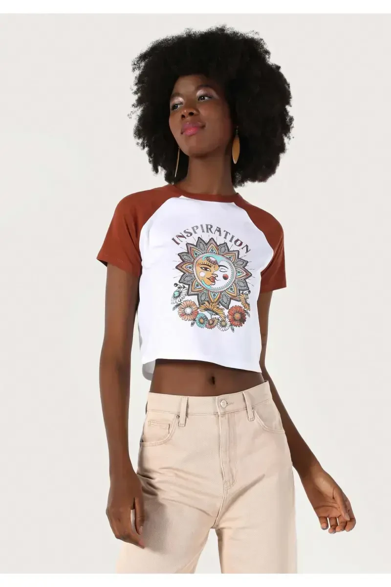 The Slim Fit Bike Neck Printed Crop White Women's Short Sleeve T-Shirt combines style and comfort, ready to become an indispensable part of your wardrobe!