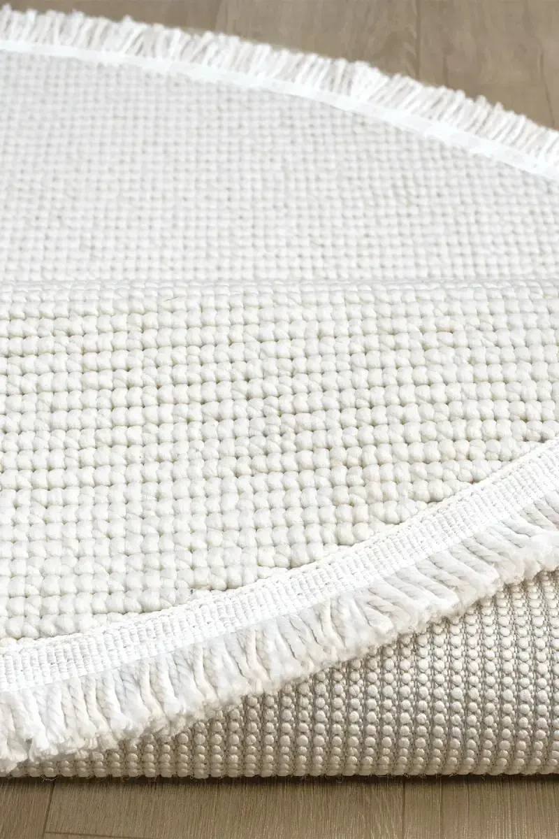 Beyaz Daire Yuvarlak Saçaklı Modern Dokuma Halı'nın temizliği oldukça pratiktir. Günlük temizlik için elektrik süpürgesi kullanmanız yeterlidir. Leke oluşması durumunda, ılık su ve hafif bir deterjan kullanarak nazikçe silmeniz önerilir. Halının ömrünü uzatmak için, düzenli olarak havalandırmanız ve direkt güneş ışığından korumanız tavsiye edilir. Ürünümüz, çevre dostu malzemelerden üretilmiş olup, sağlığa zararlı hiçbir madde içermemektedir. Halıyı ilk kullanımdan önce, üzerindeki toz ve lifleri gidermek için hafifçe silkeleyebilirsiniz. Ürünümüz, üretim hatalarına karşı garantilidir. Herhangi bir sorun yaşamanız durumunda, müşteri hizmetlerimizle iletişime geçebilirsiniz. Beyaz Daire Yuvarlak Saçaklı Modern Dokuma Halı ile evinizde modern bir şıklık ve konforlu bir yaşam alanı yaratın.