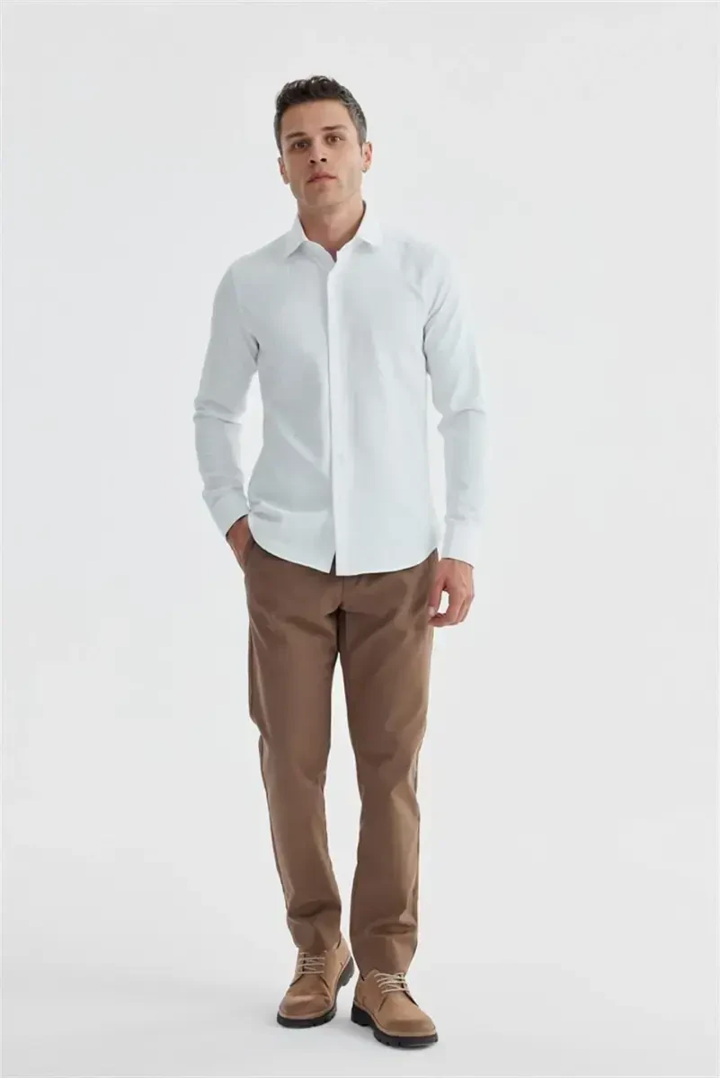 Beyaz Slim Fit Desenli Klasik Kravatlık Gömlek | Şık ve Konforlu