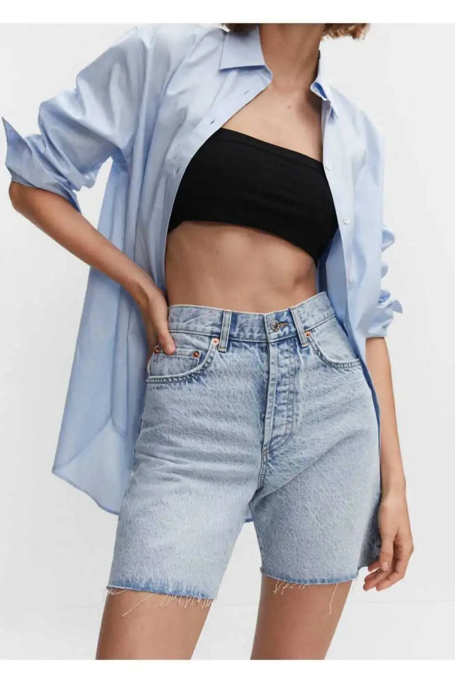 Dekorativ Yirtilgan Denim Bermuda Shortilar, Baland Belli Bermuda Shortilar, Festival Shortilar, 100% Paxta Bermuda Shortilar, Trendyolda Ishonchli Xarid Qiling