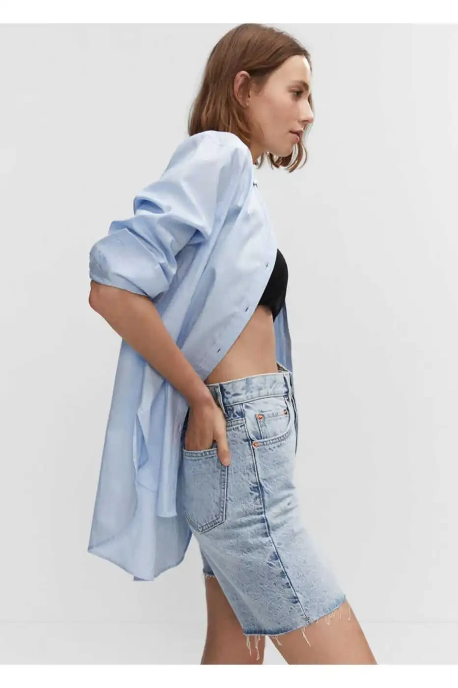 **Dekorativ Yirtilgan Denim Bermuda Shortilar** Bu o'ziga xos denim bermuda shortilar sizning garderobingizga sport va zamonaviy nafas kiritmoqqa tayyor. Mahsulotning tekis dizayni va baland beli sizga ham qulaylik, ham ham nafis ko'rinish beradi. **Xususiyatlari:** * 100% paxtadan tayyorlanganligi uni yumshoq va nafas oladigan qiladi. * Oyoq uzunligi 15,3 sm va yon tikuv uzunligi 51,9 sm. * Festival mavsumi uchun maxsus ishlab chiqilgan. * Katta o'lchamlarda mavjud. * Dekorativ yirtilgan detallar shortga moda ko'rinish beradi. * Qulay kiyish uchun kamar halqalari va beshta cho'ntagi bor. **Parvarish bo'yicha ko'rsatmalar:** * Mashinada 30°C gacha qisqa santrifüj bilan yuvilishi mumkin. * Oqartirgichlardan foydalanmang. * Eng ko'pi bilan 110°C da dazmollang. * Quruq tozalash qilinmaydi. * Quritgichda quritilmaydi. **Trendyolda ishonch bilan xarid qiling:** * Ushbu mahsulot Trendyol tomonidan yuboriladi. * Sizda 15 kunlik bepul qaytarish huquqingiz bor. * Ushbu mahsulotdan maksimal 10 dona buyurtma berilishi mumkin.