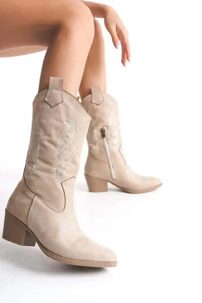 Бежевые сапоги, замшевые сапоги, сапоги с вышивкой, сапоги на молнии, ковбойские сапоги, ковбойские сапоги, женские сапоги, этнические сапоги, бежевые ковбойские сапоги, замшевые ковбойские сапоги