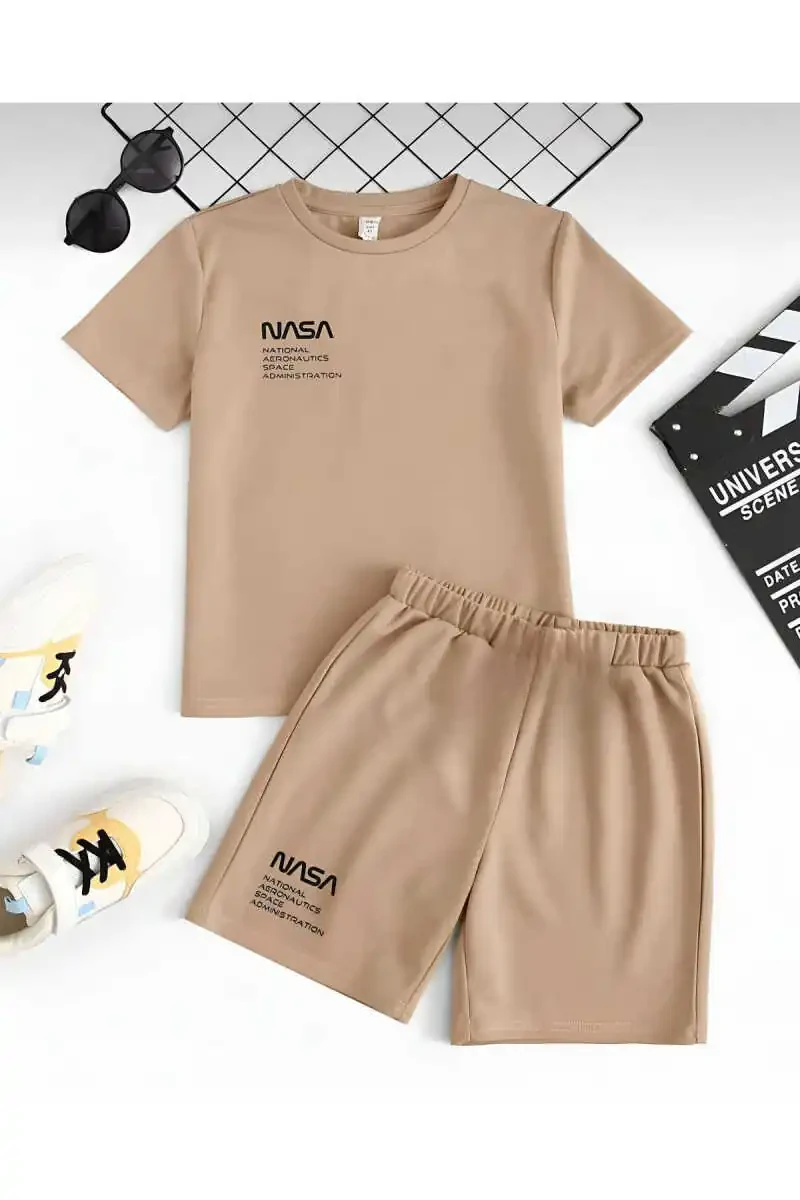 Идеальный выбор для маленьких мечтающих стать астронавтами! Бежевый детский костюм с шортами NASA с принтом сочетает в себе стиль и уверенность вашего ребенка. Изготовленный из хлопка, костюм дышащий, удобный и мягкий. Шорты имеют эластичный пояс и карманы для удобной посадки. Логотип NASA и рисунок с космонавтом обращаются к мечтам и тяге к приключениям вашего ребенка. Этот костюм, который отлично подходит для повседневной носки, игр или особых случаев, идеально подходит для завершения стиля вашего ребенка.