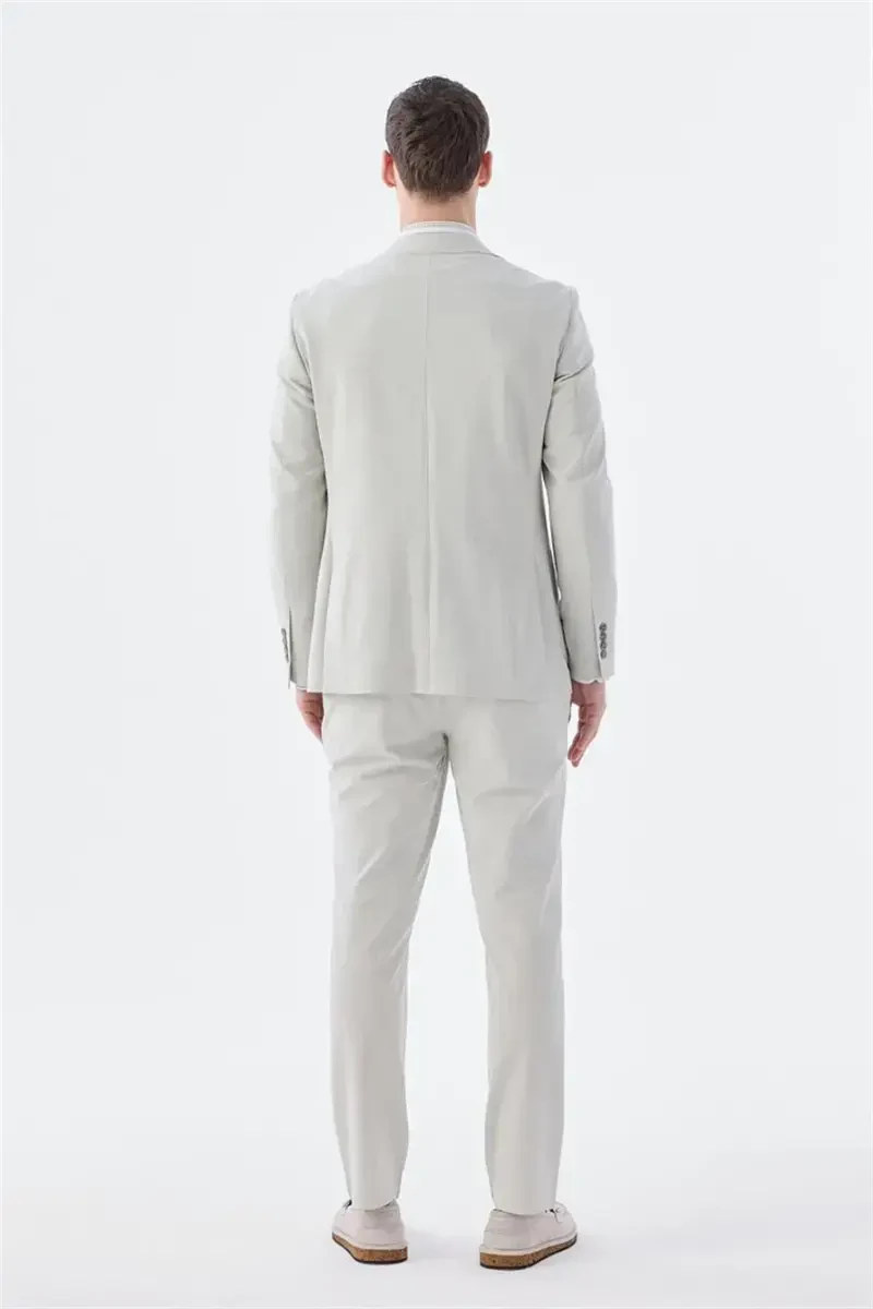 Бежевый костюм, slim fit, эластичная ткань, спортивный костюм, мужская одежда, вискоза, полиэстер, эластан, устойчивость к сминаемости, удобный костюм