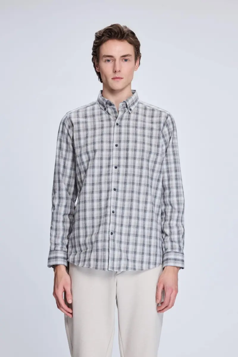 Бежевая приталенная клетчатая рубашка с длинными рукавами на пуговицах - это универсальный предмет одежды, который должен быть в гардеробе современного мужчины. Приталенный крой изящно подчеркивает фигуру, а клетчатый узор добавляет рубашке движения и стиля. Теплый и естественный оттенок бежевого цвета легко сочетается с разными цветами, позволяя создавать различные комбинации. Независимо от того, создаете ли вы повседневный образ с джинсами или более элегантный вид с брюками чинос, эта рубашка легко адаптируется к любой обстановке. Детали с пуговицами на воротнике придают рубашке другой вид, делая ее подходящей для ношения с галстуком или без него. Длинные рукава делают ее идеальным выбором в переходные периоды и в прохладную погоду. Вы можете создать более непринужденный образ, оставив манжеты расстегнутыми, или создать более формальный стиль, застегнув пуговицы. Одной из самых важных особенностей рубашки является ее хлопковая ткань. Поскольку хлопок является натуральным волокном, он позволяет коже дышать, предотвращает потоотделение и обеспечивает комфорт в течение всего дня. Кроме того, мягкая текстура хлопковой ткани не раздражает кожу и обеспечивает ощущение комфорта. Эта рубашка идеально подходит как для повседневной носки, так и для особых случаев. Вы можете продемонстрировать свою элегантность и стиль в офисе, на встречах с друзьями или на званом ужине. Бежевая приталенная клетчатая рубашка с длинными рукавами на пуговицах - идеальный выбор для мужчин, которые хотят быть одновременно стильными и комфортными. С этой рубашкой, которая станет незаменимой вещью в вашем гардеробе, вы всегда сможете выглядеть стильно. Эта рубашка, сочетающая в себе элегантность и комфорт, была разработана для удовлетворения потребностей современного мужчины. Благодаря качеству ткани, тщательному пошиву и стильному дизайну эта рубашка на долгие годы станет одной из самых любимых вещей в вашем гардеробе.
