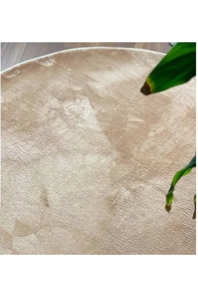 Бежевый Плюшевый Ковер: Моющийся, с Нескользящей Основой, Круглый, Роскошный Ковер Рашель